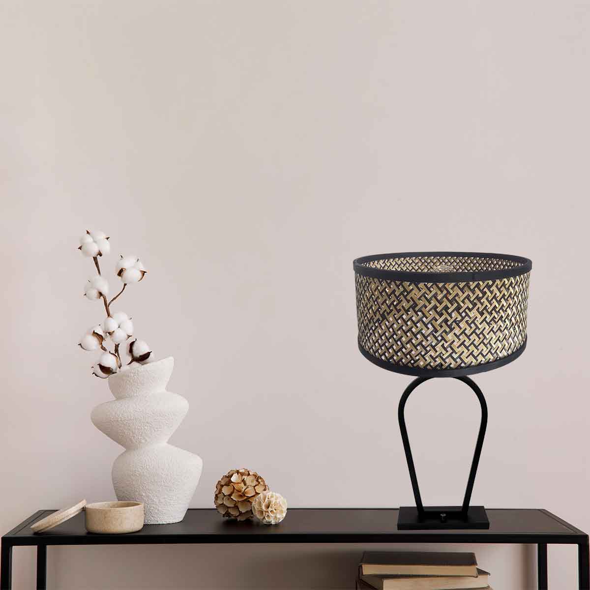Lámpara de mesa de diseño negra con pantalla de mimbre Steinhauer Stang