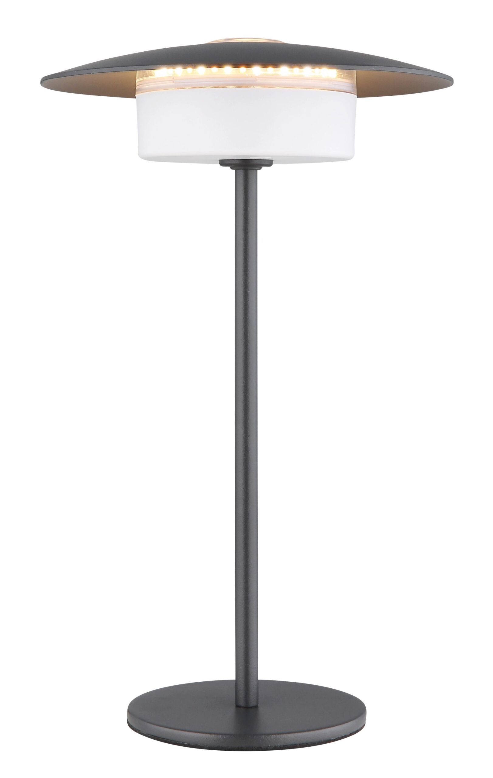 La lámpara de mesa KYLER es una magnífica mezcla de diseño moderno y funcionalidad práctica. Con una pantalla redonda plana de 180 mm, esta lámpara se integra sin esfuerzo en cualquier espacio. El marco de metal gris mate proporciona un aspecto contemporáneo, mientras que la pantalla gris de aluminio mate y plástico añade un toque elegante. Esta lámpara es regulable y cuenta con un regulador táctil sin escalas, incluyendo una función de memoria que recuerda sus configuraciones favoritas. Con una salida de luz de 140 lúmenes, la KYLER ofrece versatilidad en las opciones de iluminación, con ajuste continuo de la temperatura de luz que varía de 1800 K a 3000 K.