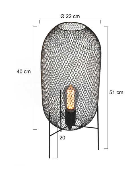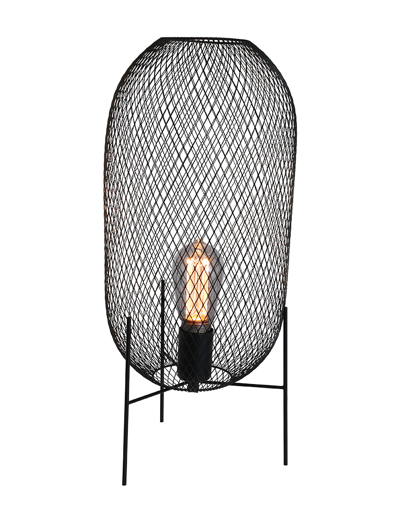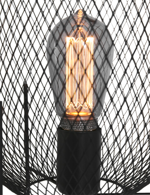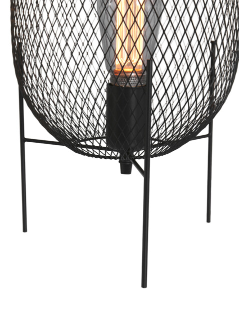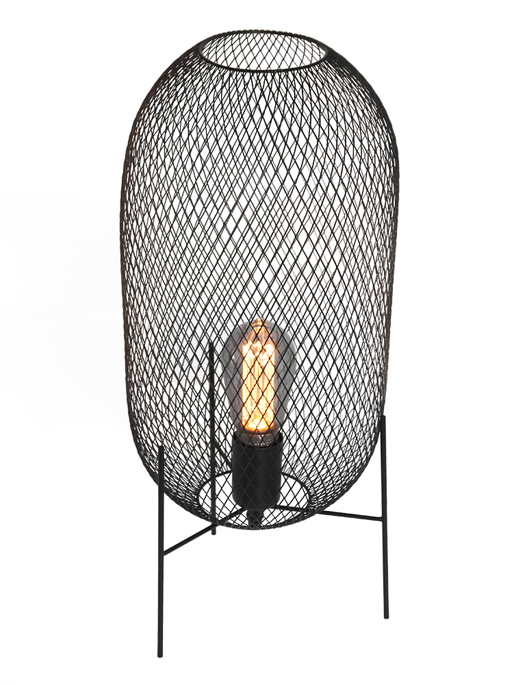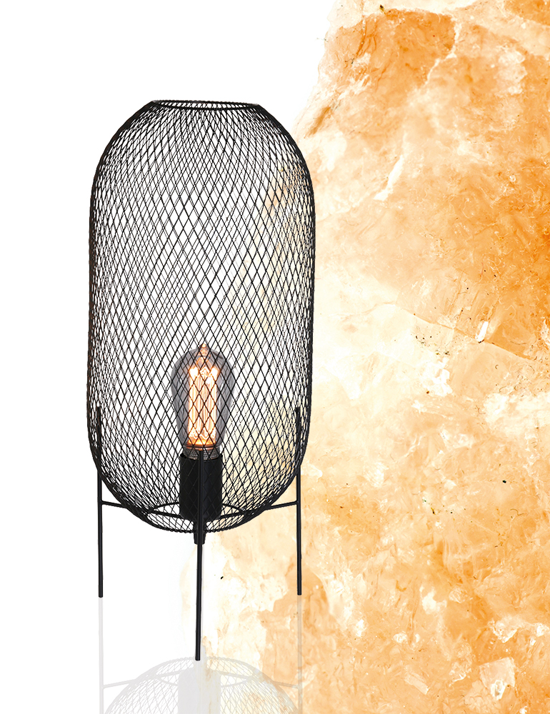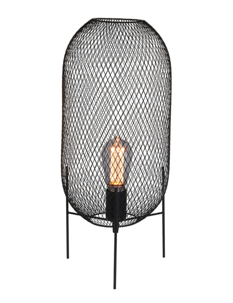 La lámpara de mesa de malla Mexlite Bodine tiene un bonito efecto industrial. La jaula que rodea a esta lámpara de mesa negra se alza sobre tres patas, y está hecha de malla negra. Combina algunos elementos negros a su alrededor y “Bodine” hará que tu decoración reluzca.