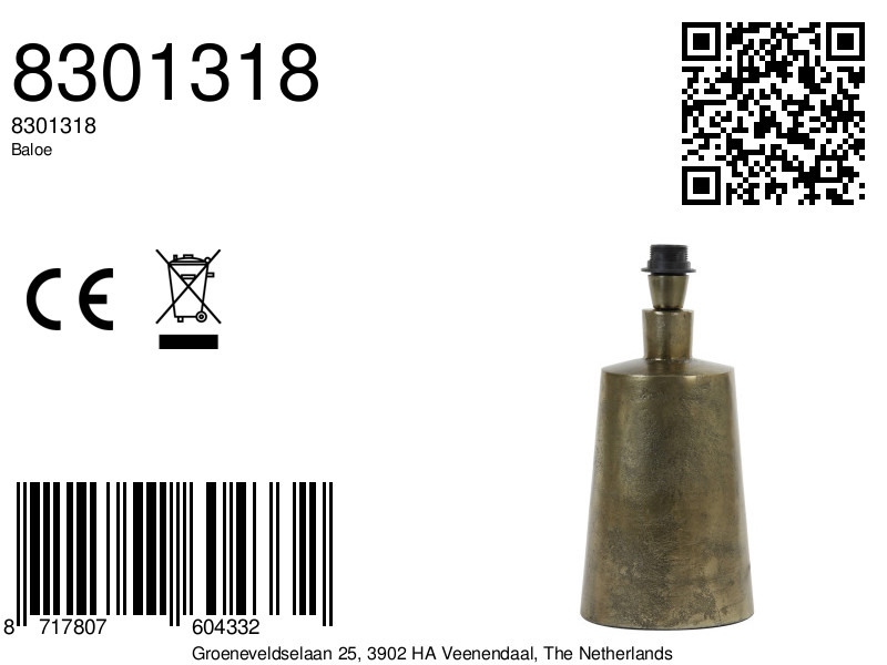 Técnicamente, esta lámpara de mesa cuenta con un casquillo E27 (grande) y se entrega sin fuente de luz, lo que te brinda la opción de elegir una alternativa de bajo consumo. Además, la lámpara se puede atenuar en combinación con una bombilla regulable y/o un dimmer o interruptor externo. Con una clasificación de protección IP20, esta lámpara es solo apta para uso en interiores. Disfruta de una garantía de 2 años en este elegante artefacto que irradia una estética clásica.