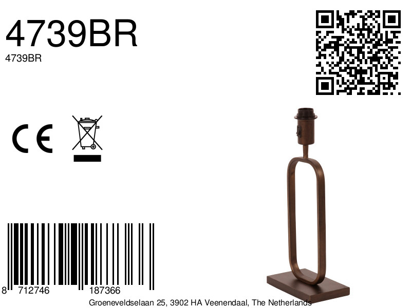 La Stang 4739BR es una lámpara de mesa refinada con un acabado en bronce cálido y un diseño esbelto. Esto le añade inmediatamente ambiente y elegancia a un aparador, mesita de noche o escritorio.
