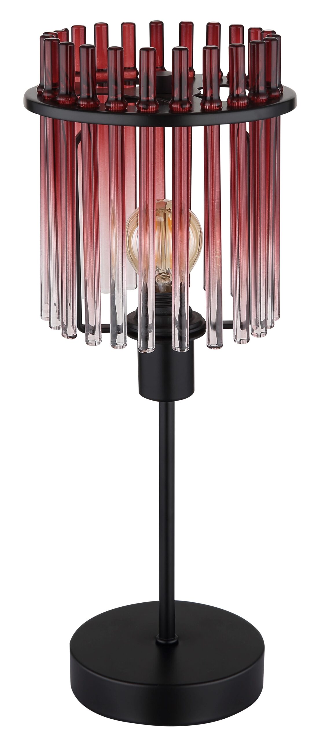 Conoce la elegante lámpara de mesa de Gorley, que se destaca por su diseño refinado y su acabado de alta calidad. El cuerpo de la lámpara está fabricado en metal negro mate, mientras que la pantalla está compuesta por varillas de vidrio brillante en un impresionante color mora. Esto no solo proporciona un aspecto moderno, sino que también ofrece una iluminación acogedora. Además, la pantalla redonda es ajustable de manera flexible con un práctico sistema telescópico, lo que aporta funcionalidad adicional.