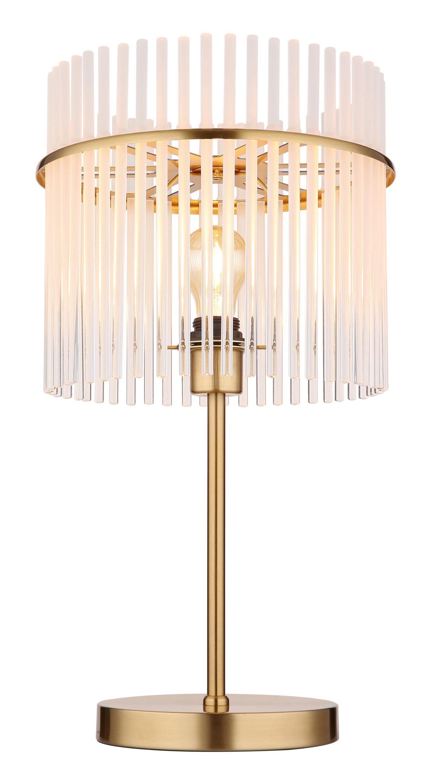 Lámpara de mesa elegante redonda dorada con vidrio. Gorley