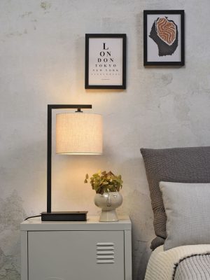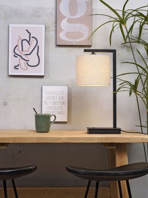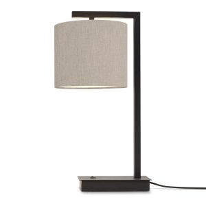 Lámpara de mesa gris claro con pantalla circular de metal/lino It’s About RoMi Boston