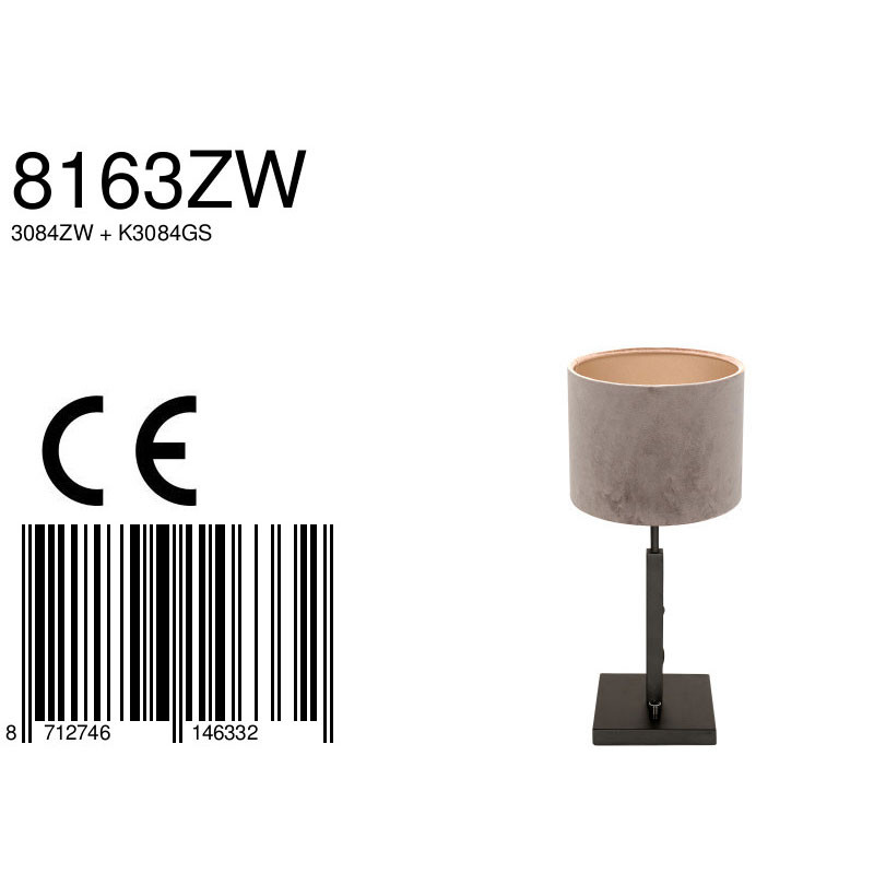 La combinación de un robusto marco negro y una suave pantalla de terciopelo hace que esta lámpara sea especialmente elegante. Ideal para aquellos que aman una decoración moderna y de tendencia, pero que aún desean mantener una atmósfera cálida.