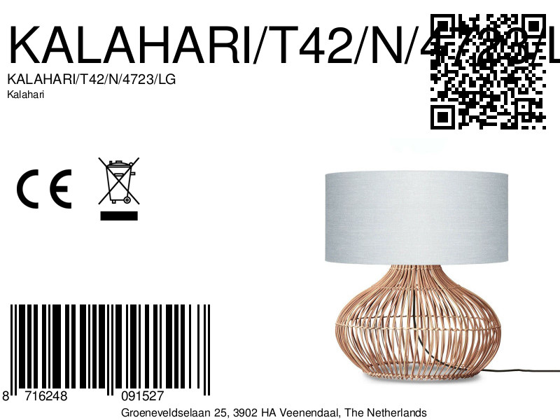 lámpara de mesa gris ratán/lino L GOOD & MOJO Kalahari