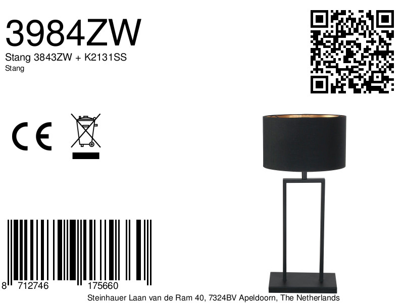 La lámpara de mesa industrial negra de la serie Stang de Steinhauer es una adición robusta y moderna a cualquier interior. Hecha de metal y tela, esta lámpara de mesa irradia modernidad y se adapta perfectamente a comedores y salas de estar. La lámpara tiene una altura de 55 cm y está equipada con un casquillo E27 inclinable, lo que significa que la pantalla de lino negro incluida, con interior dorado de 30 cm, siempre estará perfectamente recta. El acabado negro y la apariencia robusta hacen que esta lámpara sea tanto elegante como funcional.