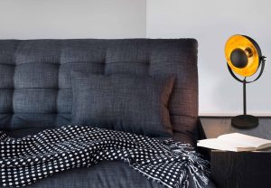 Lámpara de mesa industrial negra pantalla de cúpula dorada Globo Xirena