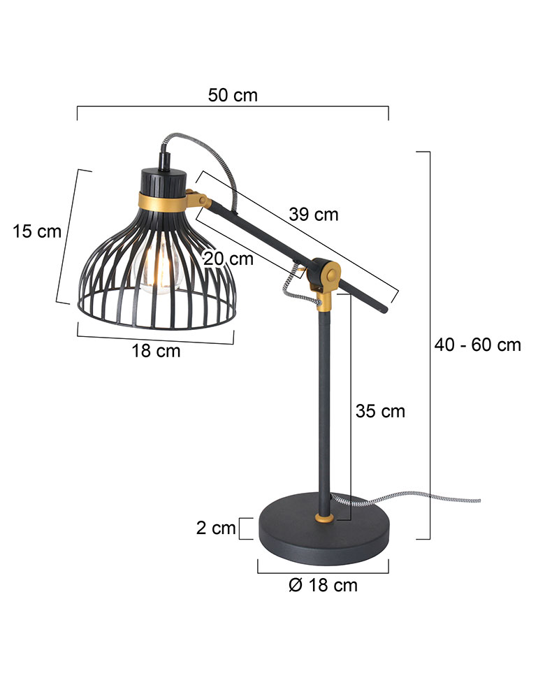 Lámpara de mesa industrial negra y dorada Anne Lighting Dunbar