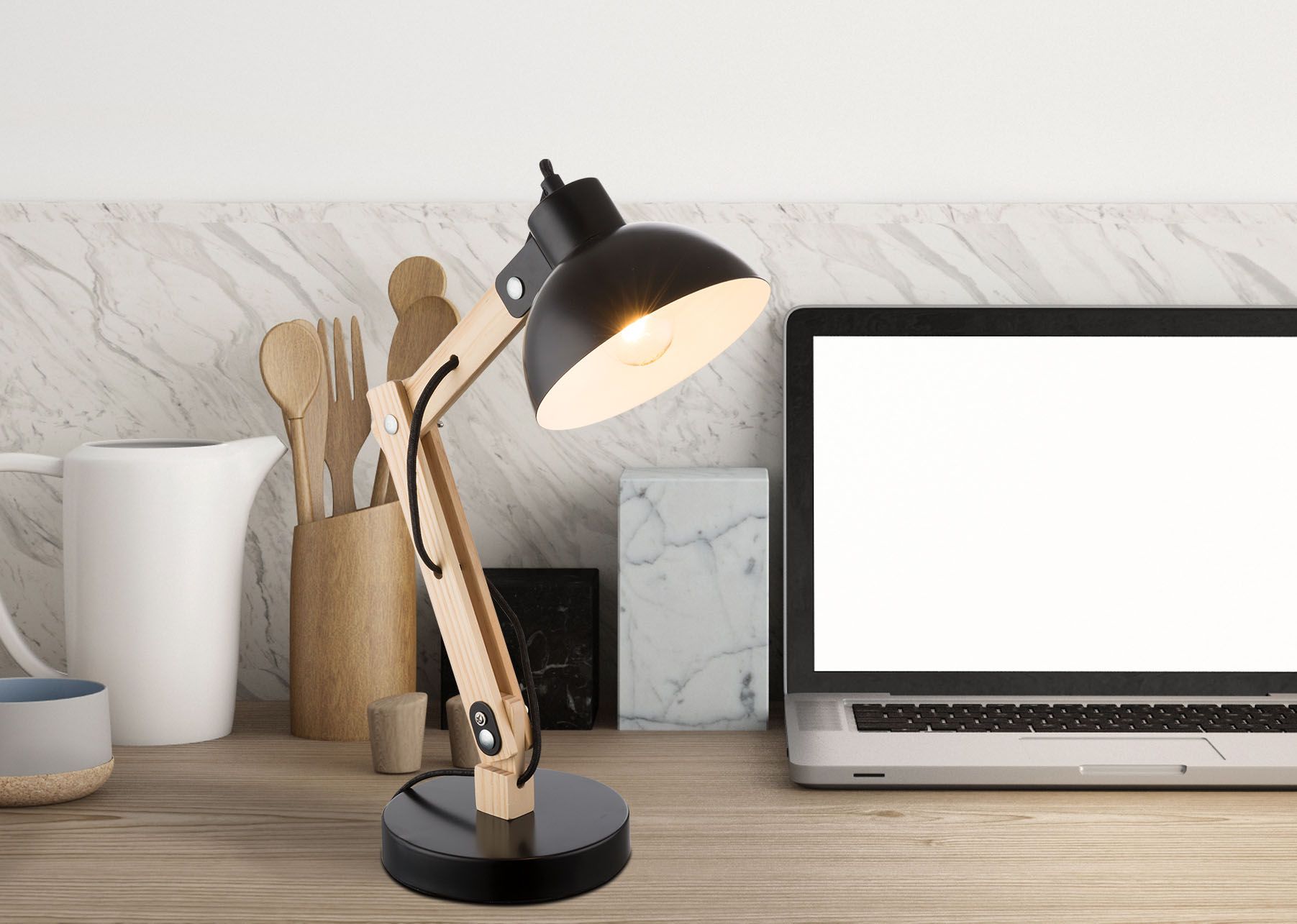 La lámpara de mesa Tongariro es una hermosa elección para cualquier interior y añade un toque de estilo a su espacio vital. Con su combinación de madera clara y metal negro, esta lámpara irradia un aspecto moderno y contemporáneo. El casquillo E27 permite colocar una bombilla de su elección, con una potencia máxima de 40W. Para una óptima eficiencia energética y una larga vida útil, recomendamos utilizar bombillas LED.