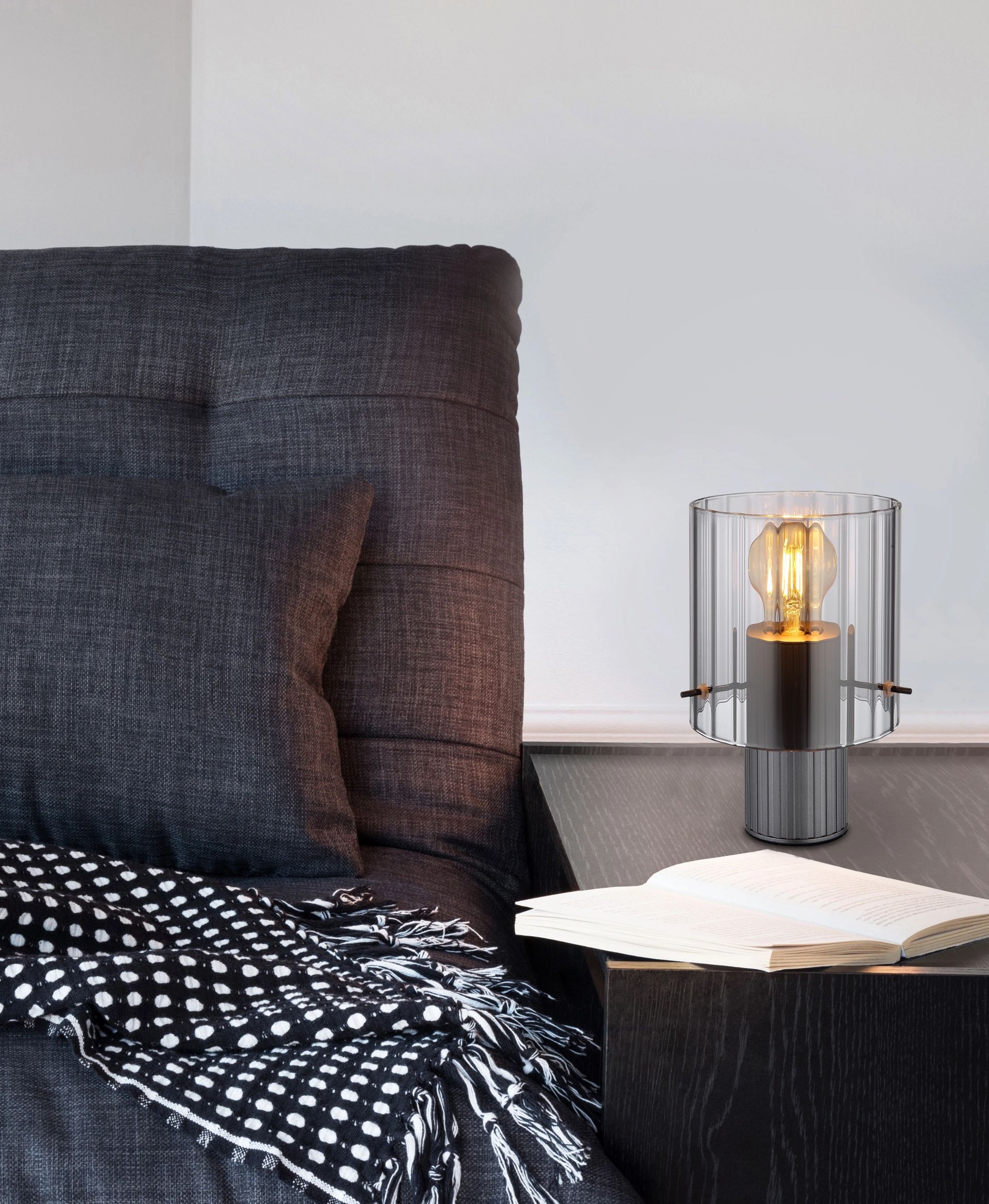 La elegante lámpara de mesa de metal gris oscuro añade un toque moderno a su interior. La pantalla redonda de vidrio ahumado, con elegantes estrías, proporciona un aspecto refinado y una óptima distribución de la luz. Con un diámetro de 140 mm, hay suficiente espacio para una bombilla E27 con una potencia de hasta 40W. El robusto marco de metal garantiza estabilidad y durabilidad, lo que hace que esta lámpara sea perfecta para el uso diario.