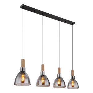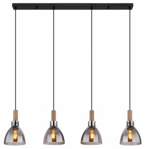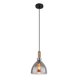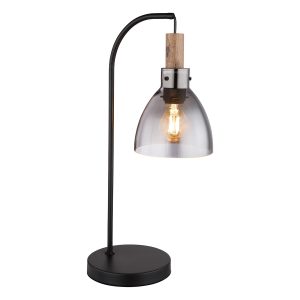 Esta elegante lámpara de mesa de la serie MATTEA inspira con un diseño sencillo. Una barra metálica negra de 55 cm de largo se extiende desde una base redonda y termina en un casquillo E27, que está envuelto en una pantalla de vidrio ahumado bien formada con decoraciones de madera. Con el casquillo E27, puede determinar el color y la intensidad de la luz hasta un máximo de 9 vatios. Debido a su larga vida útil y ahorro de energía, recomendamos bombillas LED.