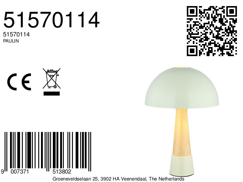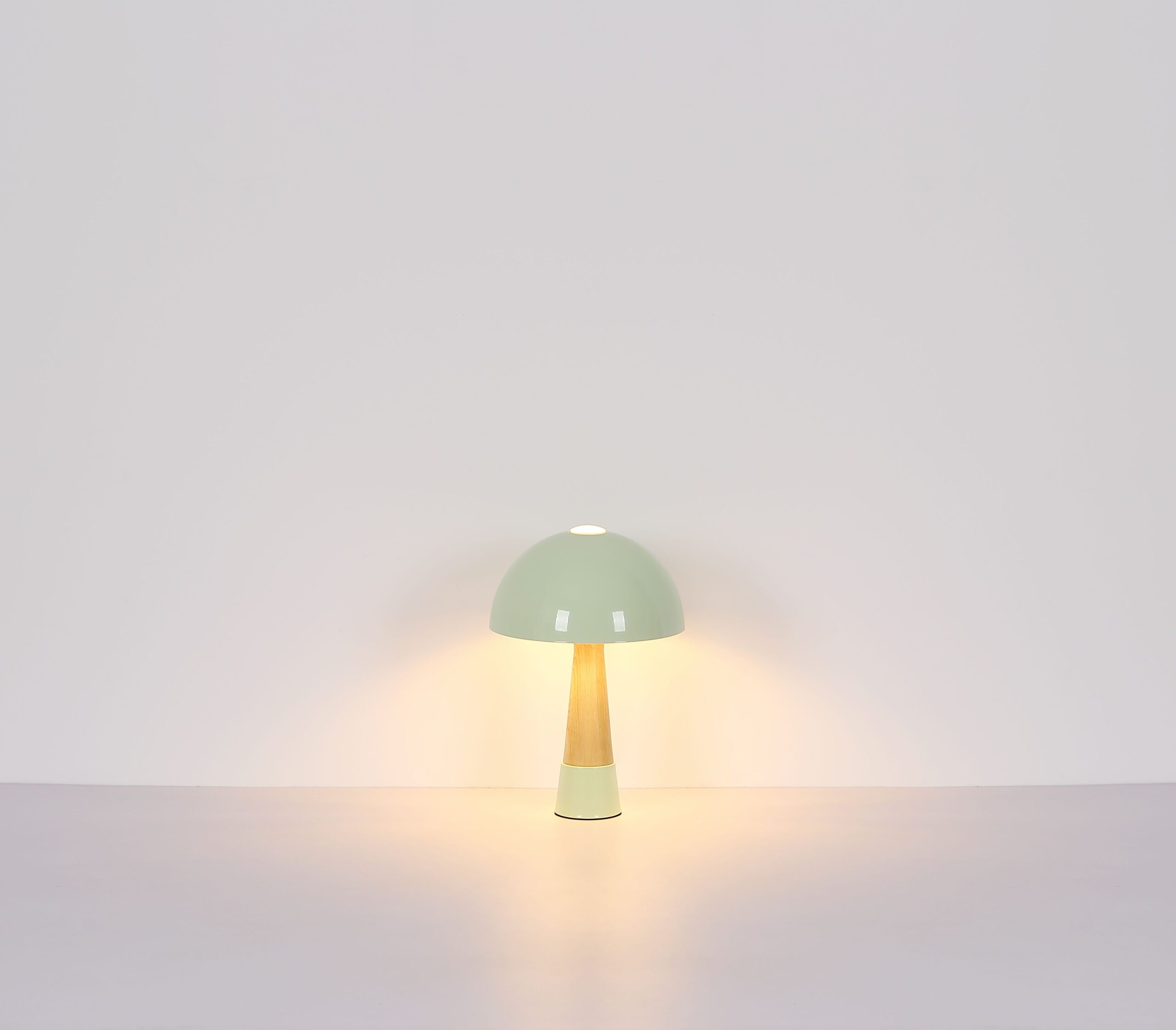Conoce la lámpara de mesa PAULIN, una hermosa adición que aporta modernidad y estilo a tu interior. Con su única forma de hongo y un diámetro de 250 mm, esta lámpara redonda es perfecta para mesitas de noche, escritorios o estanterías. El diseño, realizado en un tono verde mate con un acabado de madera, ofrece una mezcla armoniosa de elementos naturales y elegancia. La pantalla mate asegura que la luz se distribuya de manera agradable, creando un ambiente acogedor en cualquier espacio.