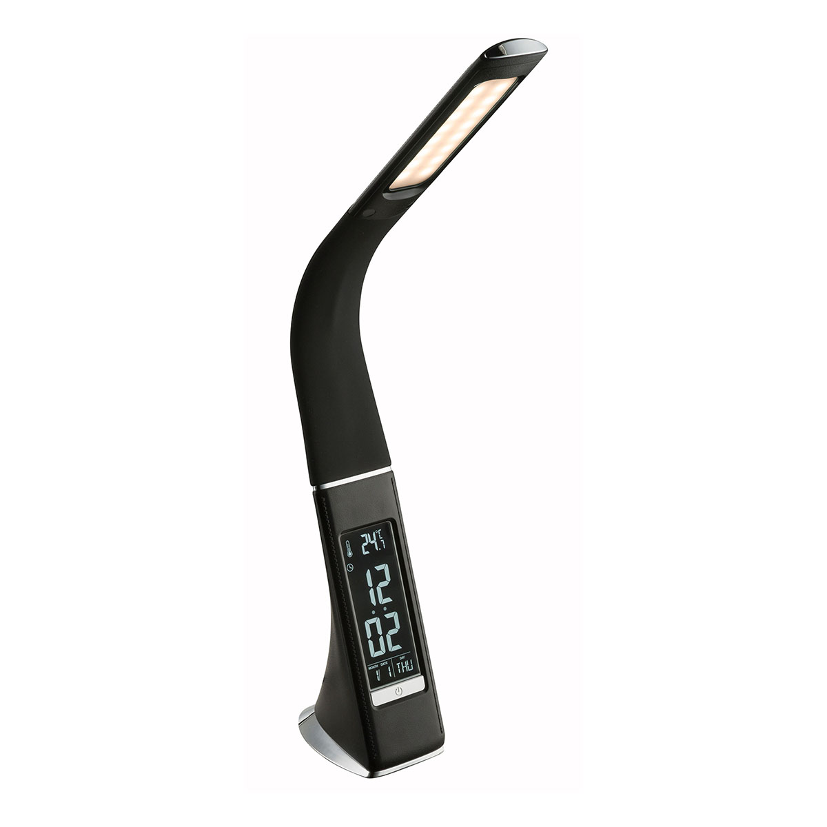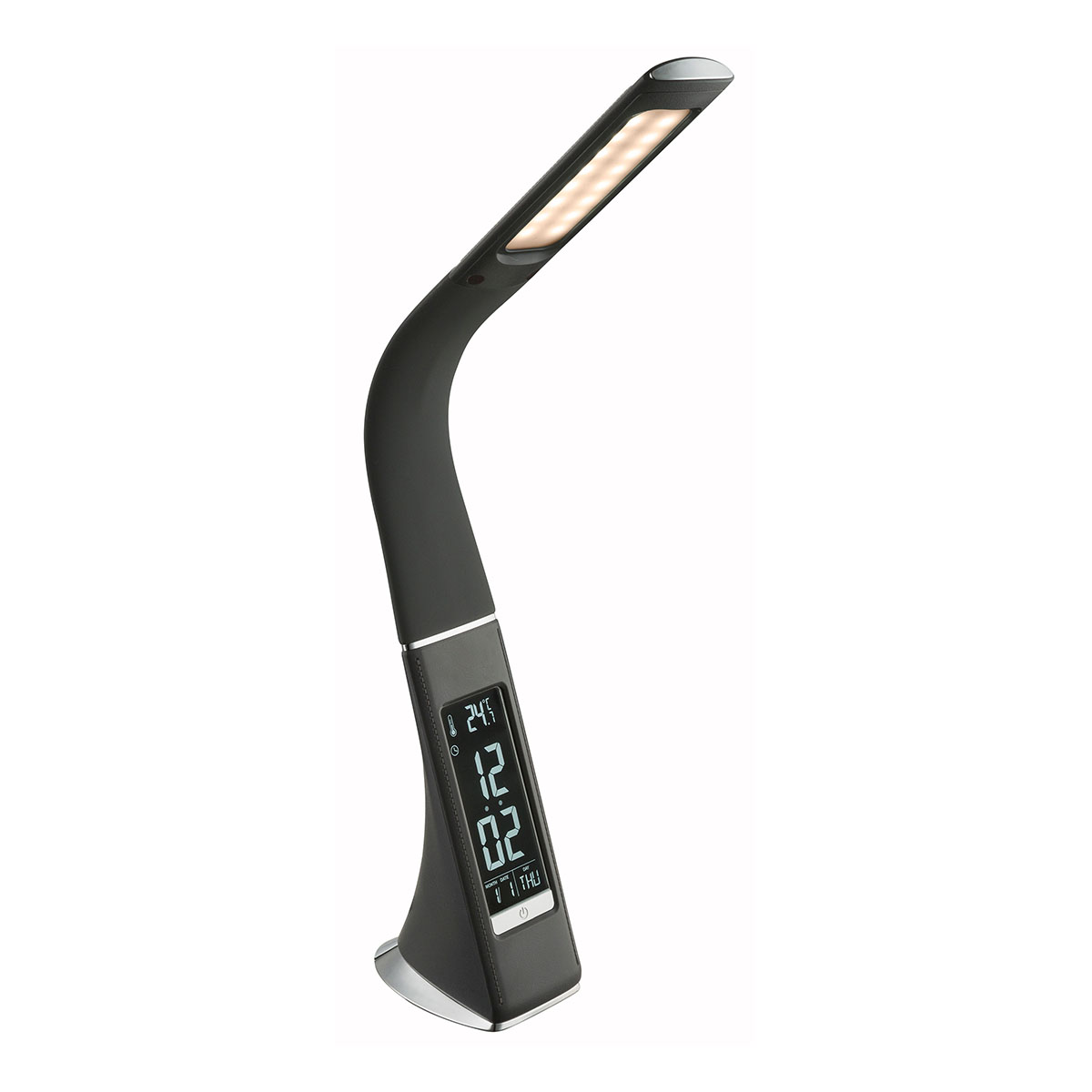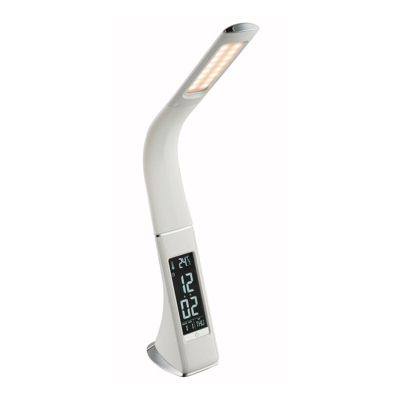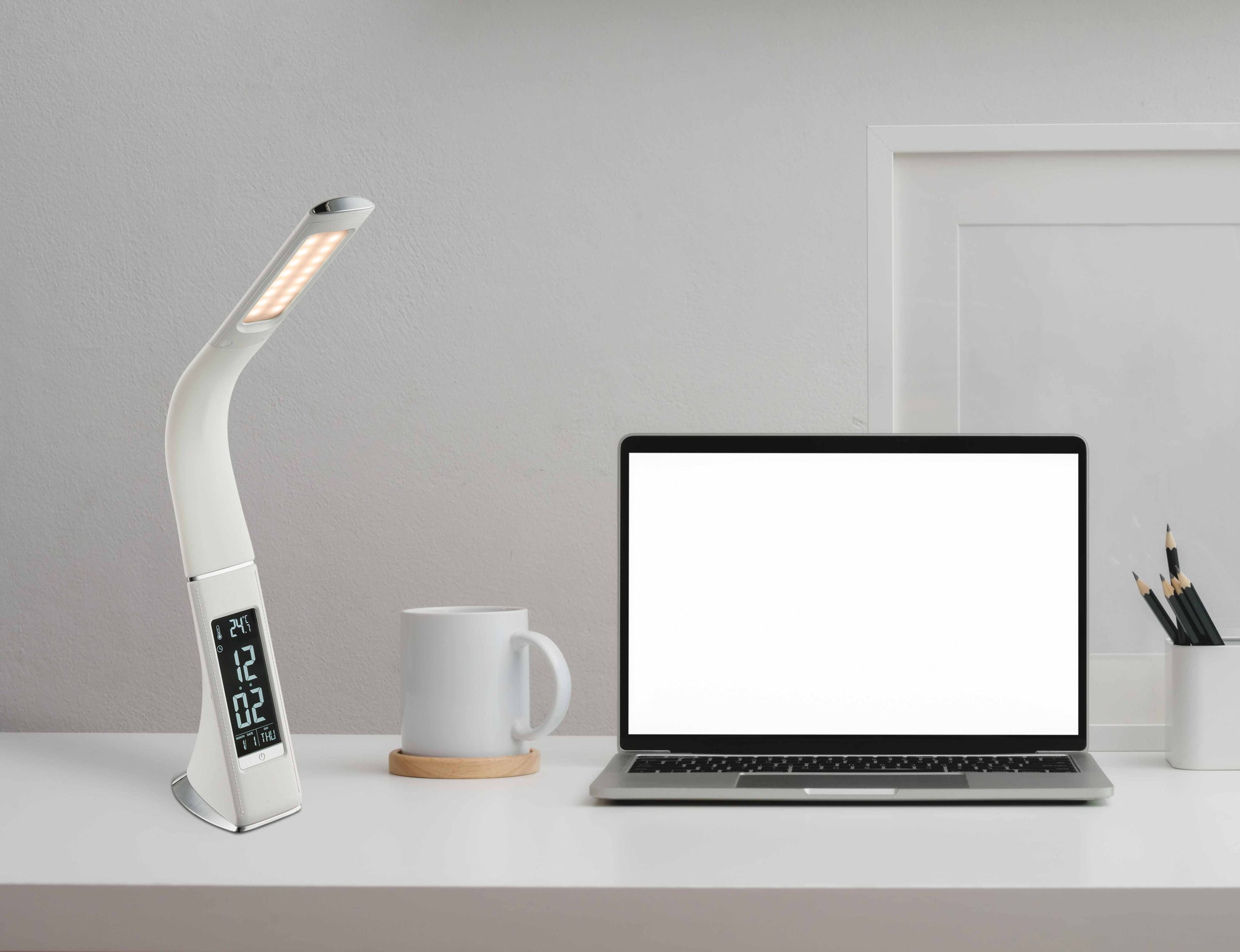 Introduce una pieza central en tu espacio de trabajo con la lámpara de escritorio Sophie. Esta lámpara refinada combina elegante metal cromado con un acabado de plástico blanco limpio. El diseño único de la lámpara ofrece una temperatura de luz ajustable (Kelvin) a través de un brazo de lámpara flexible y viene de serie con una potencia de 240 lúmenes gracias a un LED integrado. Además, cuenta con una pantalla útil que muestra información como la hora, el calendario y la temperatura de la habitación. ¡Personaliza tu espacio de trabajo con esta lámpara versátil y funcional!