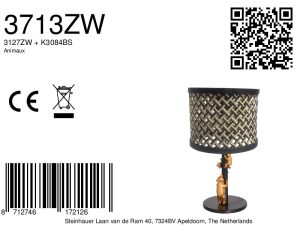 Lámpara de mesa negra con oso dorado y pantalla de mimbre Anne Light & Home Animaux