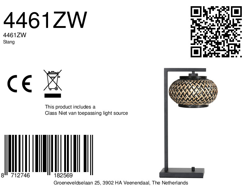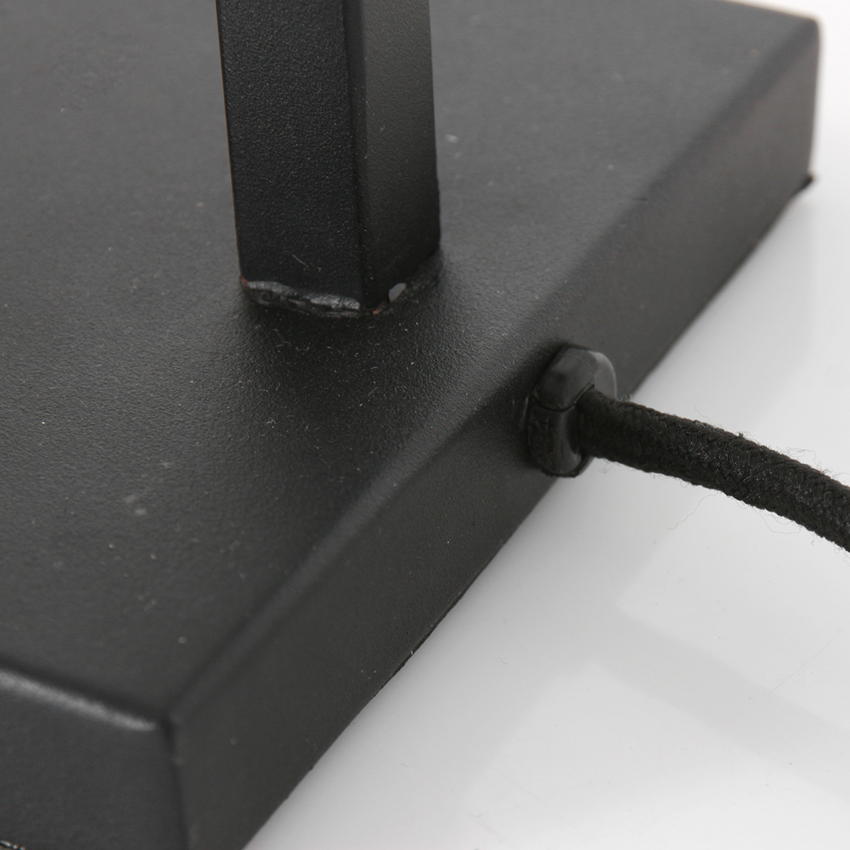 Con su marco metálico negro mate y su tamaño compacto, esta lámpara de mesa de la serie Stang forma una base ideal para la pantalla de bambú de 22,5 por 14 centímetros. La lámpara tiene una altura de 51 centímetros, una profundidad de 20 centímetros y está equipada con un casquillo E27 para fuentes de luz de hasta 40 vatios. A través del interruptor de giro en la base, puedes encender o apagar la lámpara fácilmente.