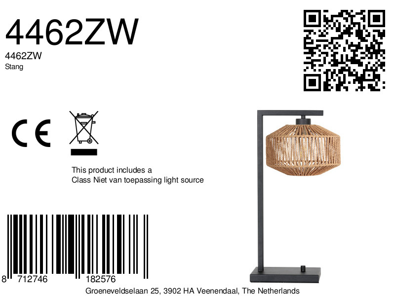 La combinación del armazón de metal negro Stang y la pantalla de cuerda de 23 por 15,5 centímetros crea una lámpara de mesa cálida y natural que se adapta a casi cualquier interior. Con una altura de 51 centímetros y un casquillo E27 para fuentes de luz de hasta 40 vatios, esta es una lámpara versátil que se controla a través del interruptor giratorio en la base.