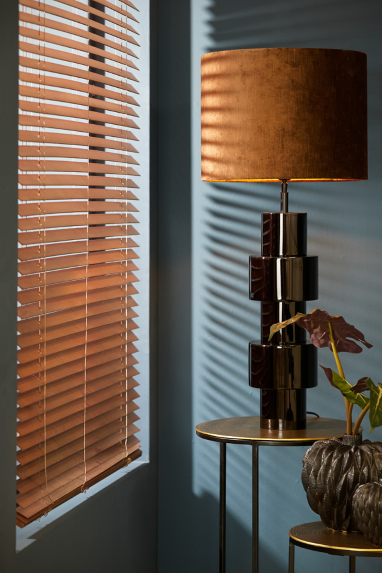 Lámpara de mesa negra con pie brillante Light & Living Nino
