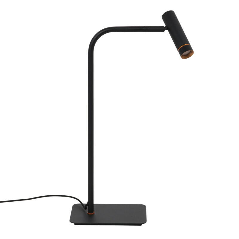 La Lumo 4606ZW es una lámpara de mesa compacta con un elegante diseño negro y sutiles detalles en color dorado. Con una altura de 45 cm, esta lámpara es perfecta para colocar en un escritorio, mesita de noche o mesa auxiliar.