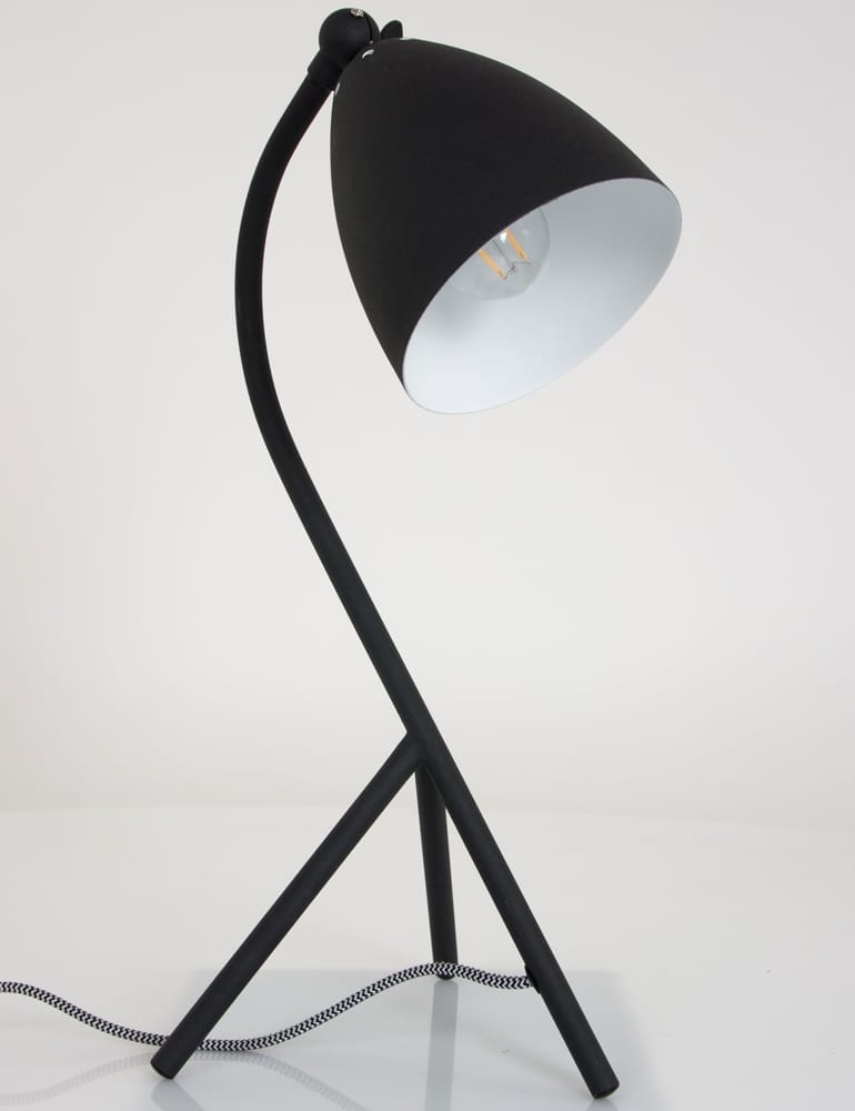 Elegante simplicidad. Esta lámpara de escritorio es realmente un tesoro. Mexlite ha diseñado con “Lina” una sencilla lámpara de mesa o de escritorio moderna. Un elegante trípode sostiene la pantalla ajustable. Todas las partes son negras, excepto el interior de la pantalla, que es blanca para una mejor emisión de luz. “Lina” es una lámpara muy agradecida para ti, pide poco y se adapta a todos los estilos de decoración con todos los colores.