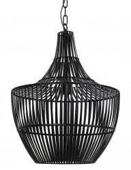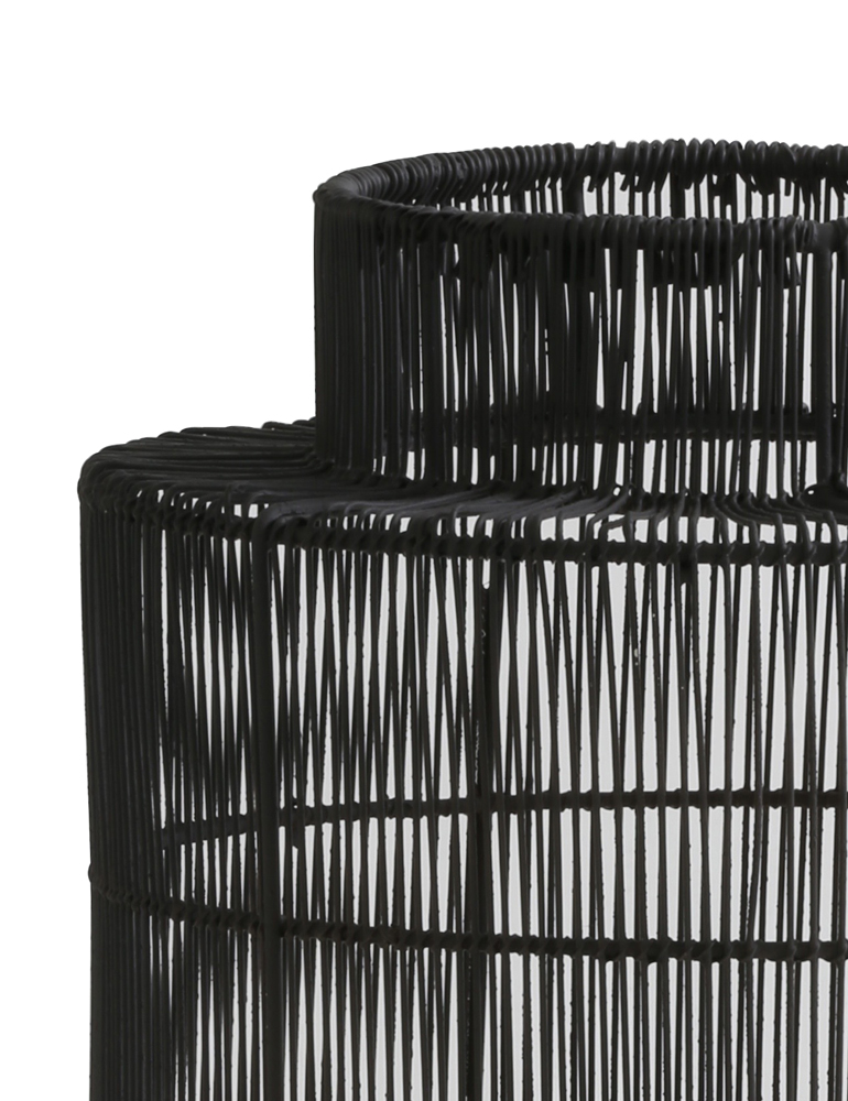 La lámpara de mesa negra diseño original de Light&Living Gruaro es un complemento perfecto para un salón o habitación de ambiente cálido. Esta lámpara de estilo vanguardista tiene una estructura en jaula cilíndrica, que gana encanto sobre una mesita auxiliar en madera. Las varillas de metal negro dispuestas en vertical permiten ver la bombilla interior aportando a la luz un aspecto liviano y sugerente.