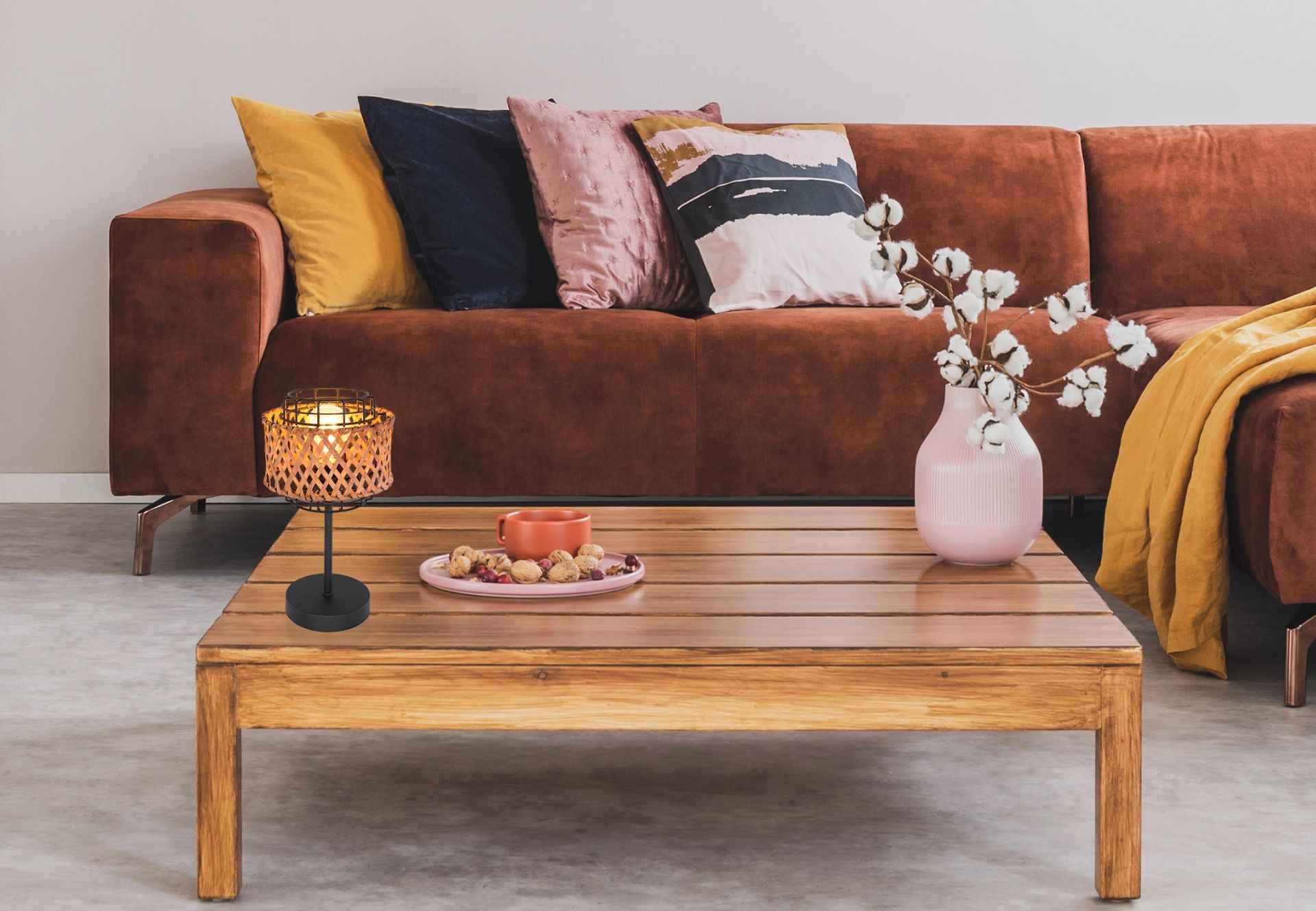 Agregue un toque de elegancia a su interior con la elegante lámpara de mesa de la serie Gina. Con un diámetro de 17 cm y una altura de 32 cm, esta lámpara es tanto funcional como estéticamente atractiva. La base redonda de metal negro ofrece estabilidad, mientras que el esbelto soporte metálico proporciona una apariencia moderna. En la parte superior del soporte se encuentra un casquillo E27, rodeado por una hermosa pantalla de rejilla de metal negro, acentuada por un anillo de bambú trenzado. Este diseño único le permite la libertad de colocar una bombilla de su elección, lo que le permite ajustar el color y la intensidad de la luz según su preferencia personal.