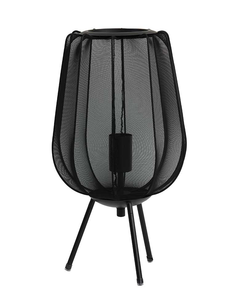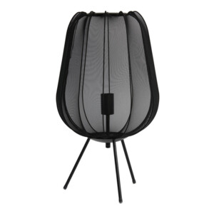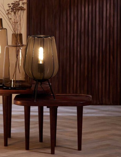 La sutileza que envuelve esta lámpara de sobremesa atmosférica la convierte en un elemento ideal para incluir en la decoración de una habitación de diseño. Lucirá espectacular junto a muebles y detalles minimalistas como, por ejemplo, un cabecero tapizado en gris marengo, un armario abierto y práctico y una lámpara colgante de malla de metal color negro.
