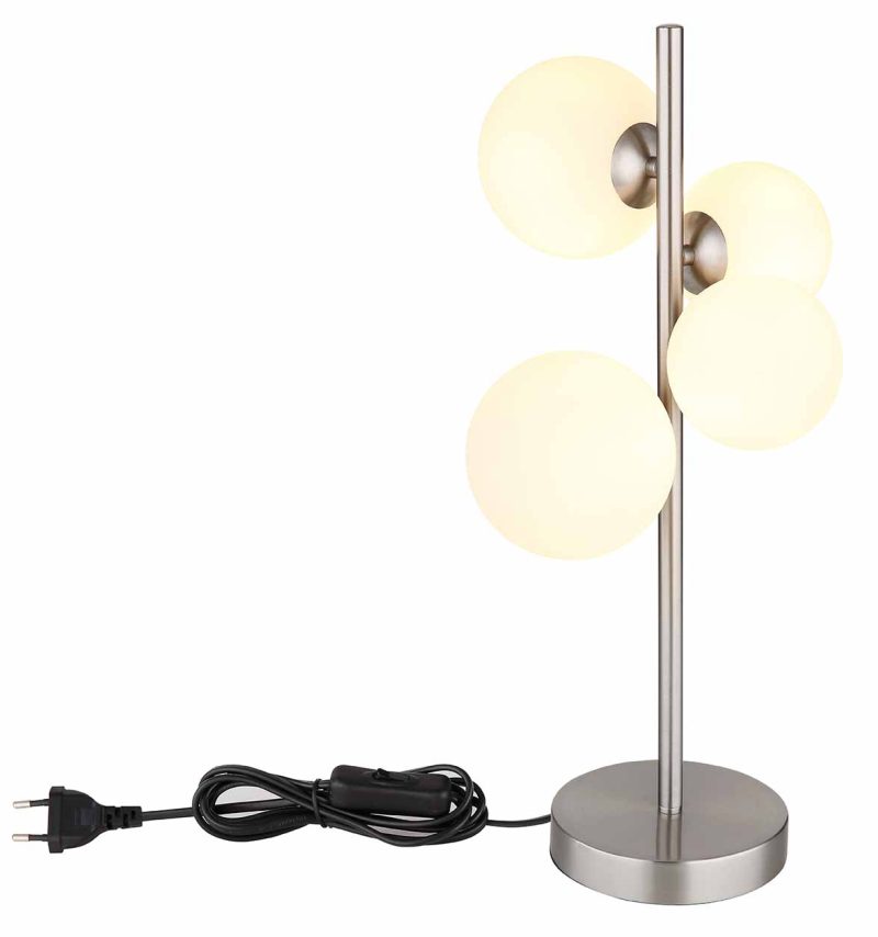 Lámpara de mesa níquel vertical 4 pantalla de cristal opal Globo Riha