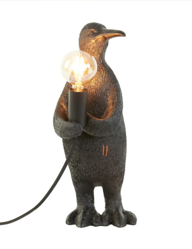 ¡Qué divertido es la lámpara de mesa pinguino Light & Living Pinquin! Este diseño es adorable, un pinguino de 34 cm de alto sujeta en sus manos el casquillo donde después colocarás la bombilla. Si quieres darle un toque de diseño a este aplique apuesta por una bombilla decorativa para que sea aún más especial. Esta lámpara de mesa negra fue diseñada por Light&Living, y no tiene por qué ser un diseño infantil, es perfecto para un interior moderno. ¿Estás ansioso por darle a este residente de la Antártida un nuevo hogar? No esperes más y añádelo a tu cesta.