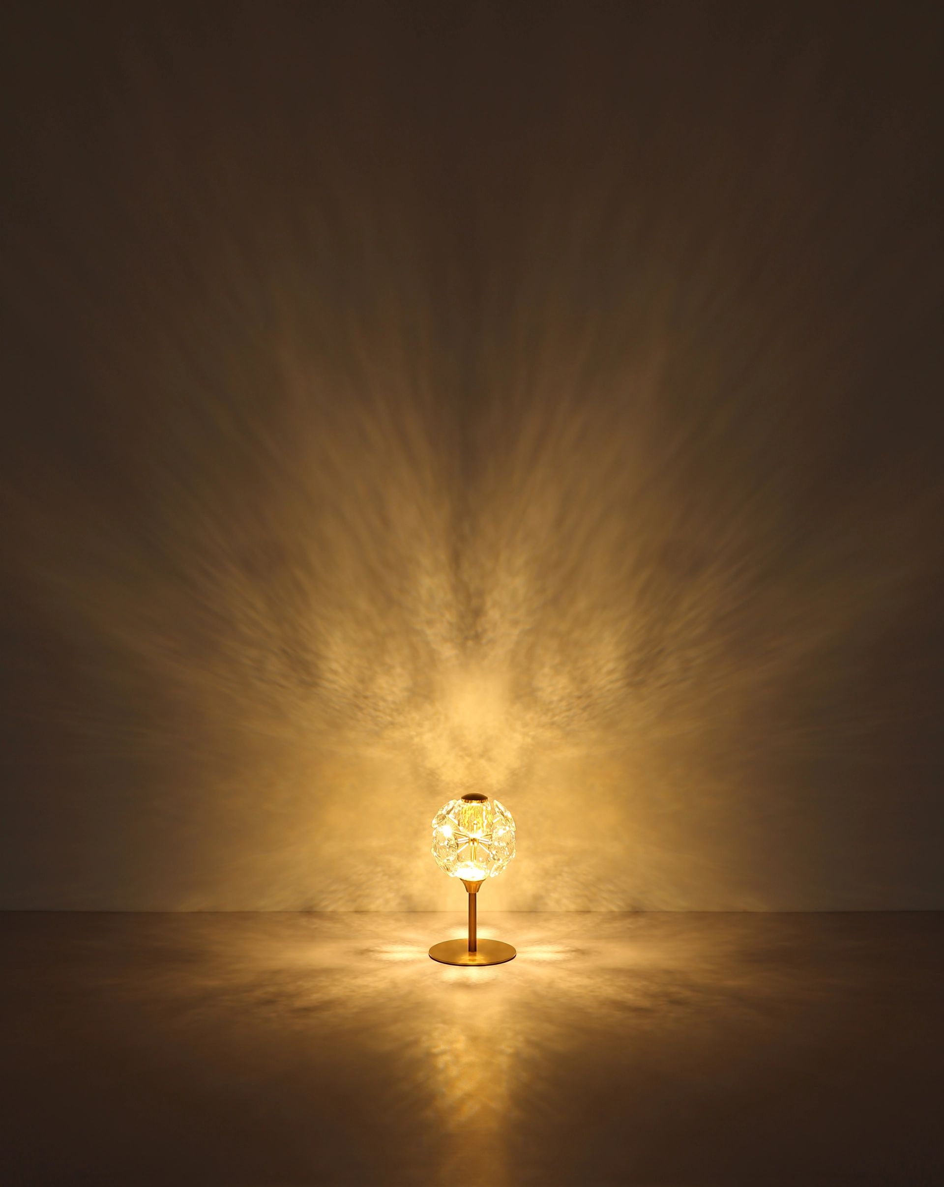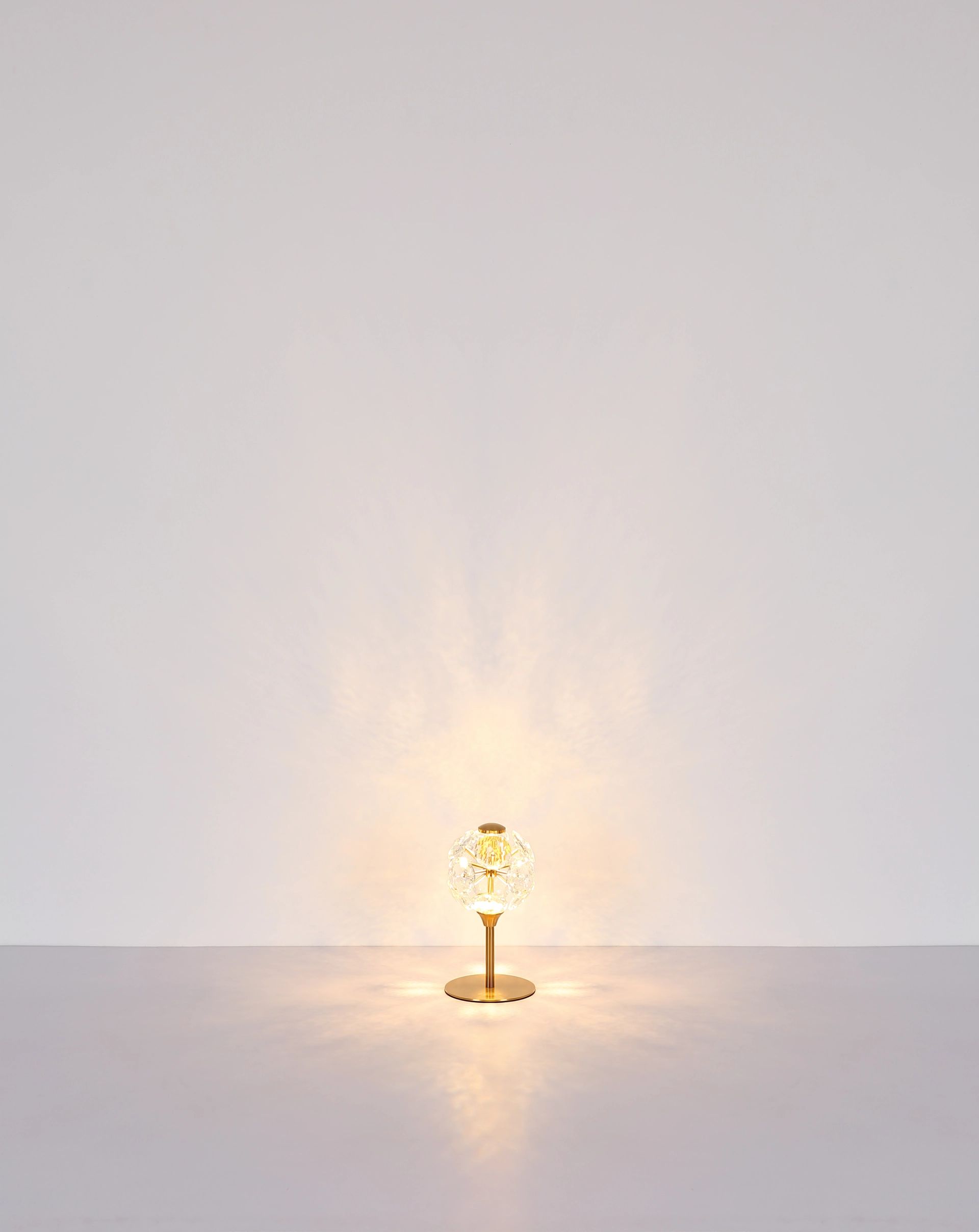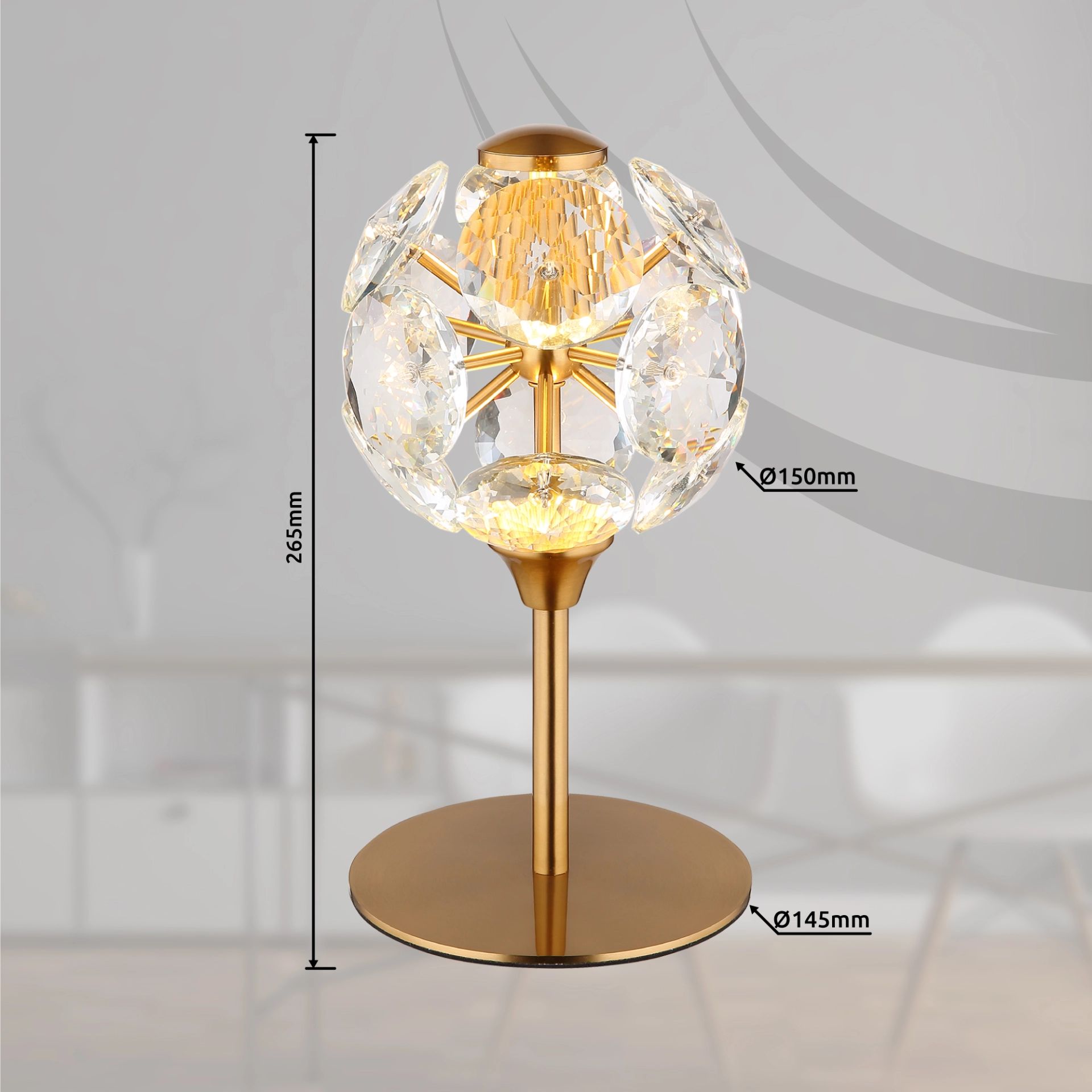 Lámpara de mesa redonda con metal dorado y cristales Virina