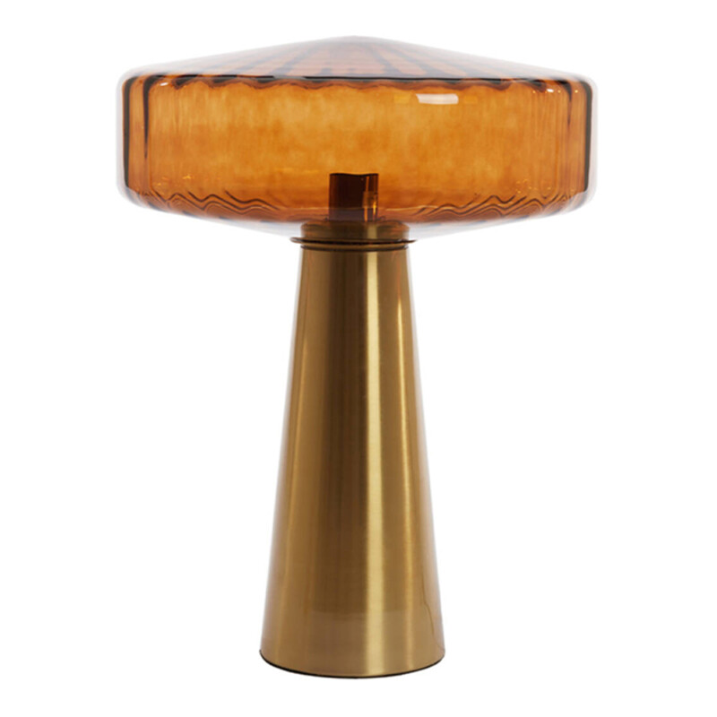 Lámpara de mesa retro dorada con marrón Light and Living Pleat