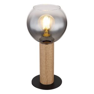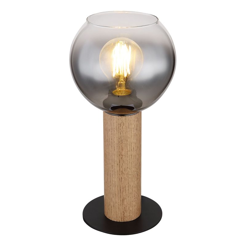 Esta increíble lámpara de mesa inspira con un diseño moderno. Un casquillo E27 sobresale de una base redonda negra con hermosas decoraciones en apariencia de madera. El casquillo E27 está envuelto en una elegante pantalla de vidrio redonda y le da la posibilidad de elegir el color y la intensidad de la luz hasta un máximo de 40 vatios. Con otros modelos de esta serie, puede complementar perfectamente su sala de estar.