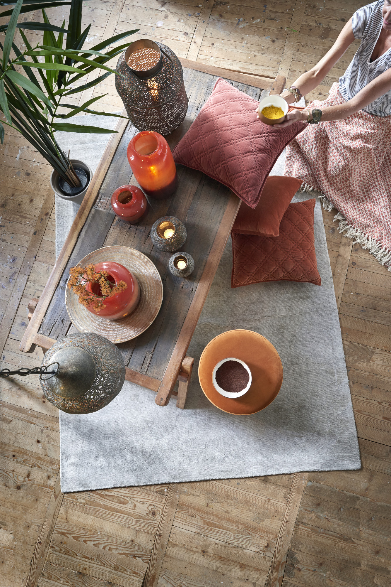 Lámpara de metal perforado en tono bronce antiguo Light & Living Emine