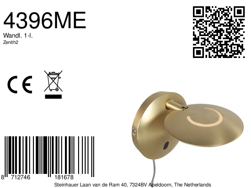 La lámpara de pared Zenith 2 4396ME combina un lujoso acabado en latón con un diseño elegante y funcional. Gracias a sus dos puntos de articulación y a su cabezal rotatorio, puedes dirigir la luz exactamente donde la necesites, lo que la convierte en una opción ideal como lámpara de lectura junto a la cama, el sofá o el escritorio. La LED integrada de 8 vatios proporciona 1040 lúmenes y un alto CRI de 90 para una reproducción fiel de los colores.