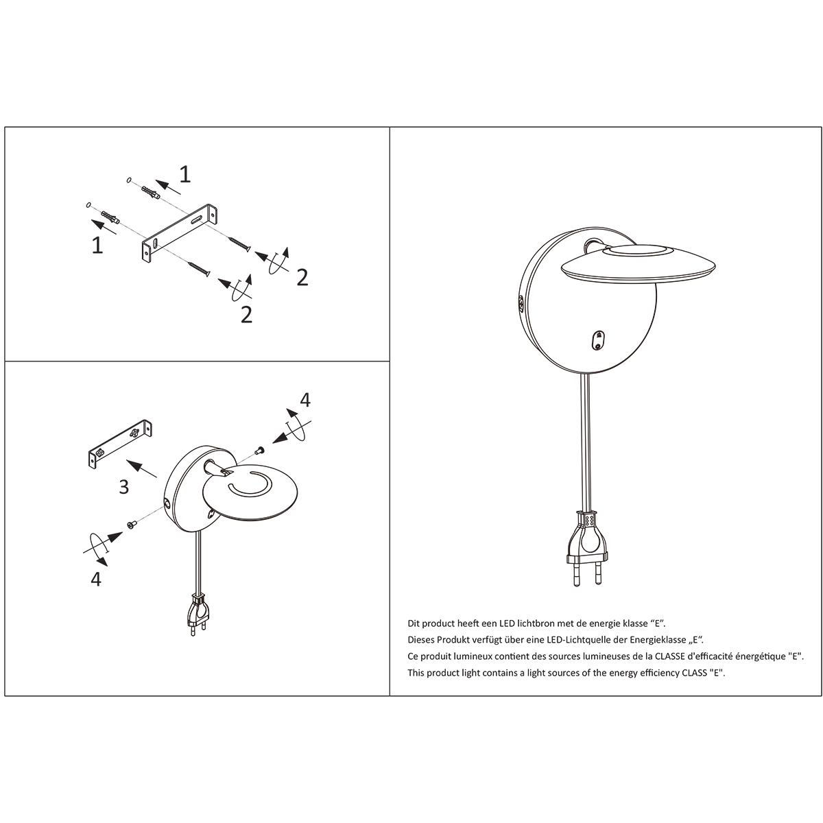 La temperatura de color es ajustable de 2200 a 4000 Kelvin, permitiendo cambiar fácilmente entre una luz ambiental extra cálida y una luz funcional brillante. El funcionamiento es sencillo mediante el regulador de presión o el control remoto incluido, lo que hace que esta lámpara de pared sea especialmente fácil de usar.