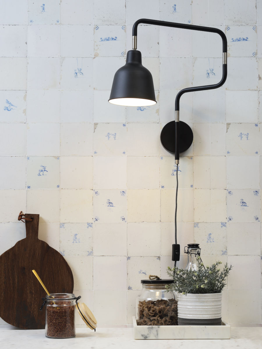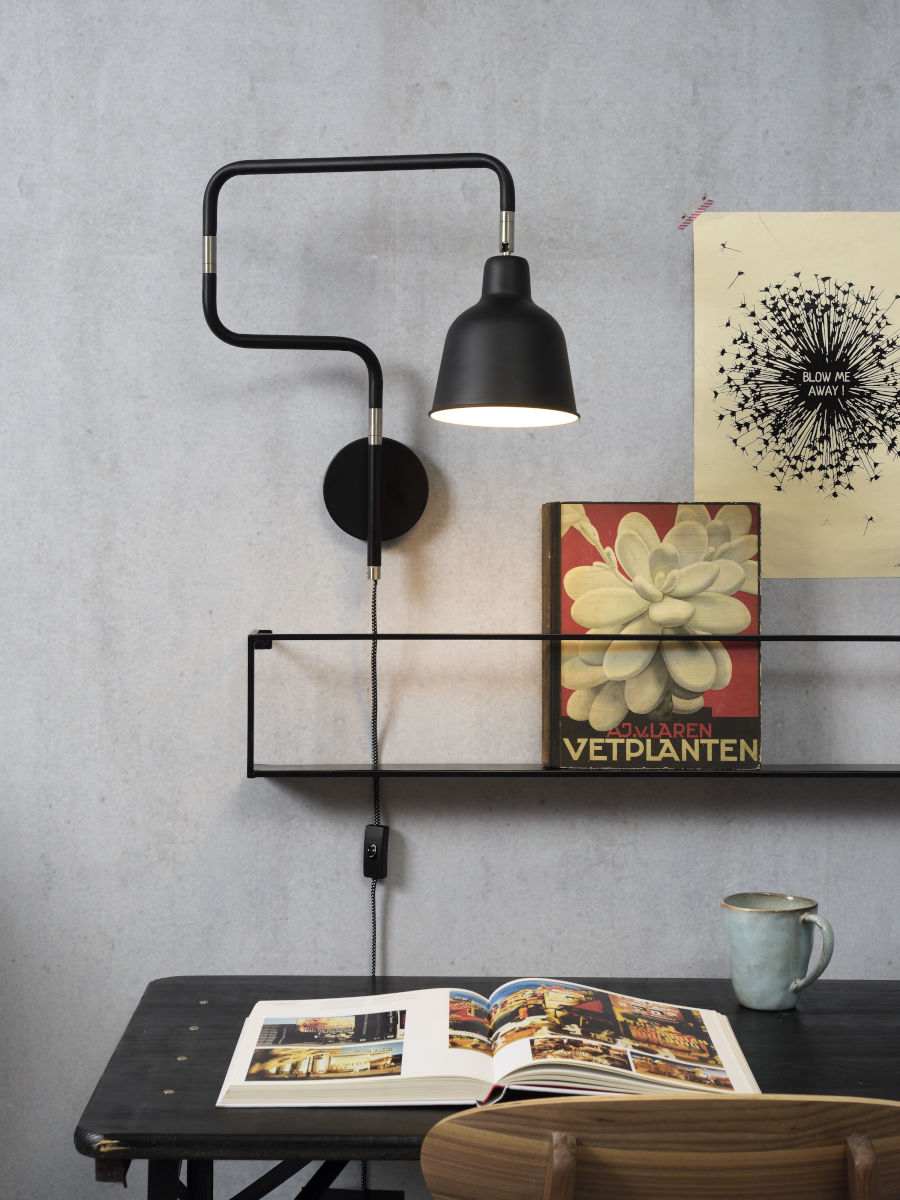 Lámpara de pared negra retorcida ajustable de It’s About RoMi London. Agrega un estilo retro único a tu comedor, dormitorio o sala de estar. Adecuada para casquillo E27 y a prueba de polvo (IP20). Fuente de luz no incluida. Para una iluminación llamativa y flexible.