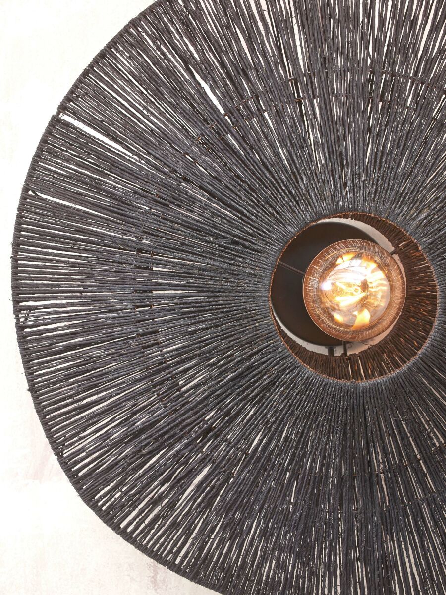 Lámpara de pared bohemia de caña negra y metal, ideal para comedor, pasillo, dormitorio o sala de estar. Equipado con un gran casquillo E27 y a prueba de polvo (IP20). Añade un toque exótico y moderno a tu interior con esta lámpara única. La caña y el metal oscuros ofrecen una apariencia mística, perfecta para crear un ambiente elegante y con estilo.