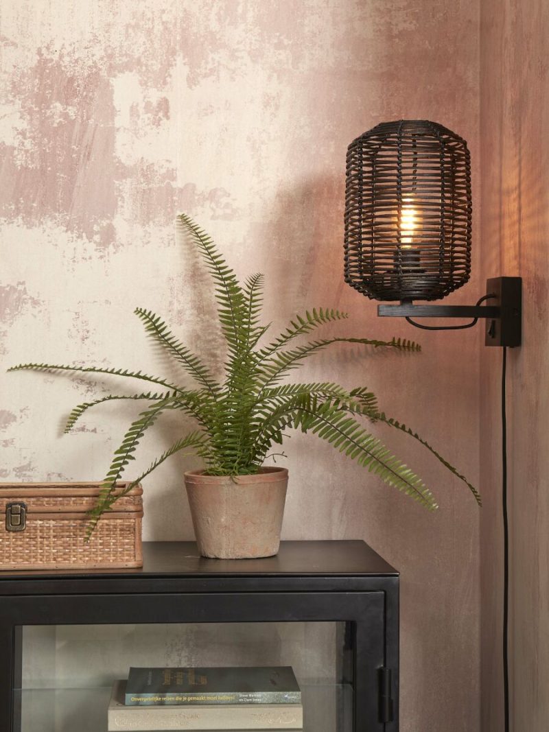Lámpara de pared bohemia negra metal-ratán GOOD & MOJO Tanami