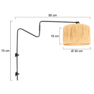Lámpara de pared con pantalla de ratán en brazo Anne Light & Home Linstrom naturel y negro