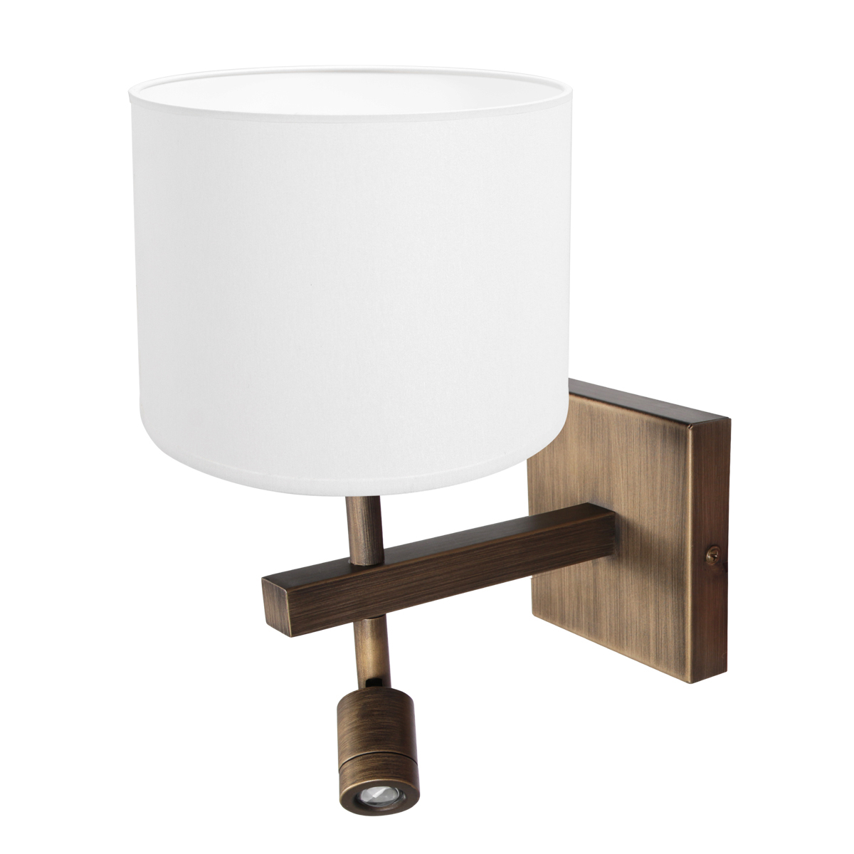 Lámpara de pared de bronce ligera con lino blanco grueso y luz de lectura Steinhauer Stang