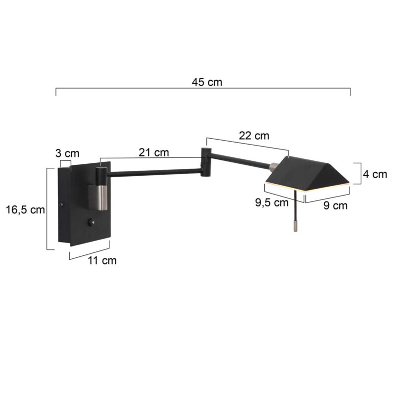 Da a tu sala de estar o dormitorio un aspecto elegante con la lámpara de pared de diseño de Steinhauer. Gracias a su color negro, esta lámpara encaja en un interior contemporáneo. La base cuadrada y la pantalla triangular destacan el diseño moderno. El brazo se puede extender en dos posiciones, de veintiún a un máximo de cuarenta y cinco centímetros. Además, la pantalla de la lámpara se puede inclinar.
