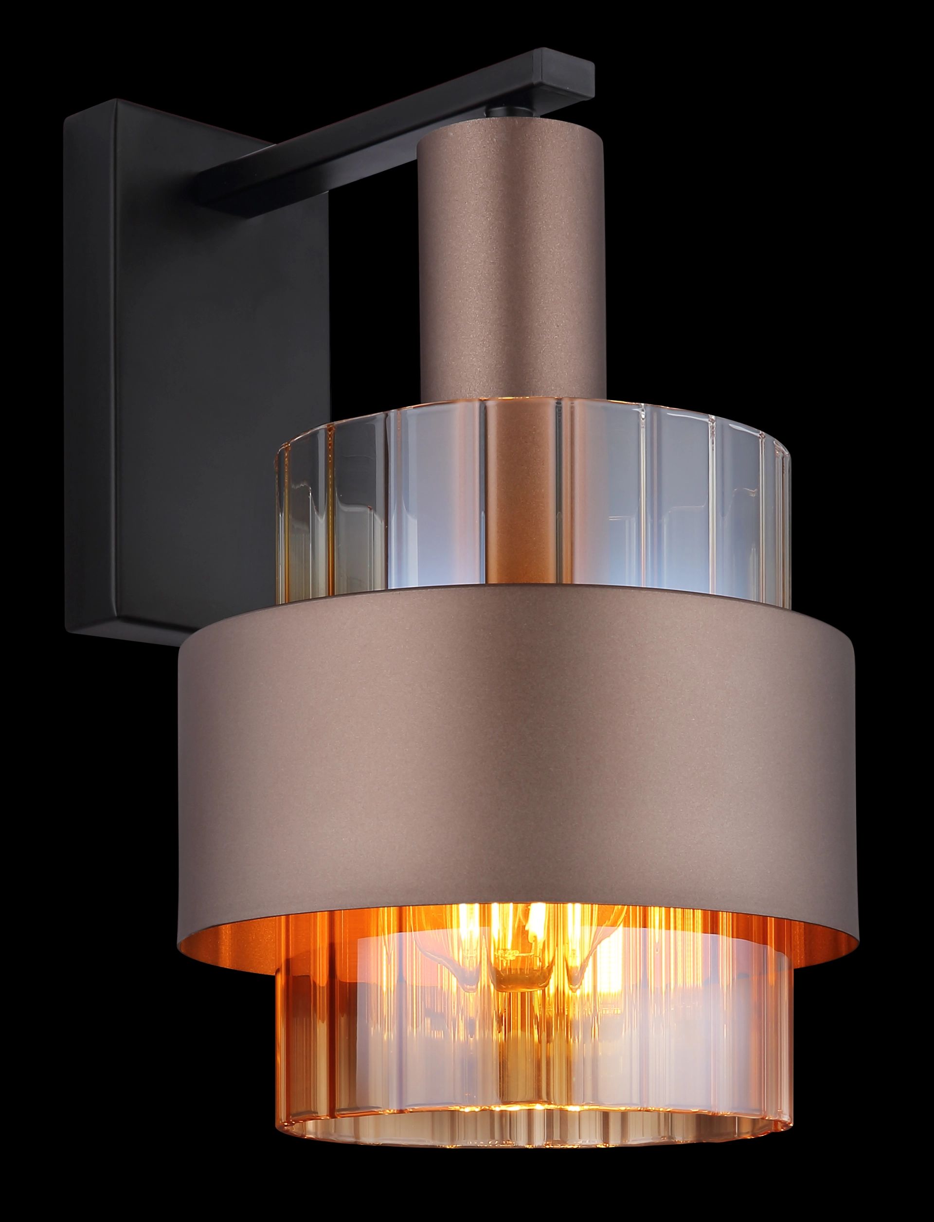 El cuerpo de la lámpara está fabricado en metal con un acabado negro mate, mientras que la pantalla de vidrio tiene un cálido color ámbar con un efecto claro y difuminado. El anillo de bronce que rodea la pantalla añade una dimensión extra al conjunto. Gracias a la armoniosa combinación de elementos modernos y clásicos, la lámpara de pared MILLEY es un punto de estilo inconfundible que enriquece cualquier habitación.