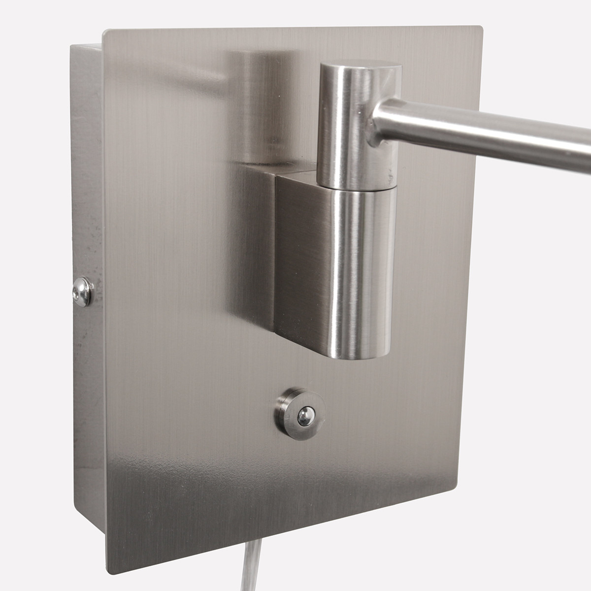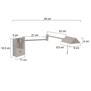 Esta lámpara de pared de color acero de la serie Retina combina elegancia con uso práctico. El reflector giratorio y el brazo extensible facilitan la configuración de la iluminación según tus deseos. La función de atenuación integrada ajusta la temperatura de la luz entre 4000 y 2200 Kelvin, creando tanto luz de trabajo brillante como luz ambiental cálida. Con una potencia luminosa de 1000 Lúmenes, la lámpara es ideal para iluminación funcional y decorativa. Equipado con dos puertos USB para mayor comodidad. Esta lámpara de pared de la marca Steinhauer se entrega con 2 años de garantía.