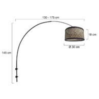 El brazo arqueado de metal negro es ajustable de 130 a 175 cm de profundidad y tiene una altura de 145 cm, lo que facilita la configuración de la lámpara. La pantalla de ratán, con un diámetro de 40 cm y una altura de 20 cm, emite una luz suave y natural. Una lámpara de pared perfecta para los amantes de un estilo cálido y contemporáneo. Suministrada con 2 años de garantía del fabricante.