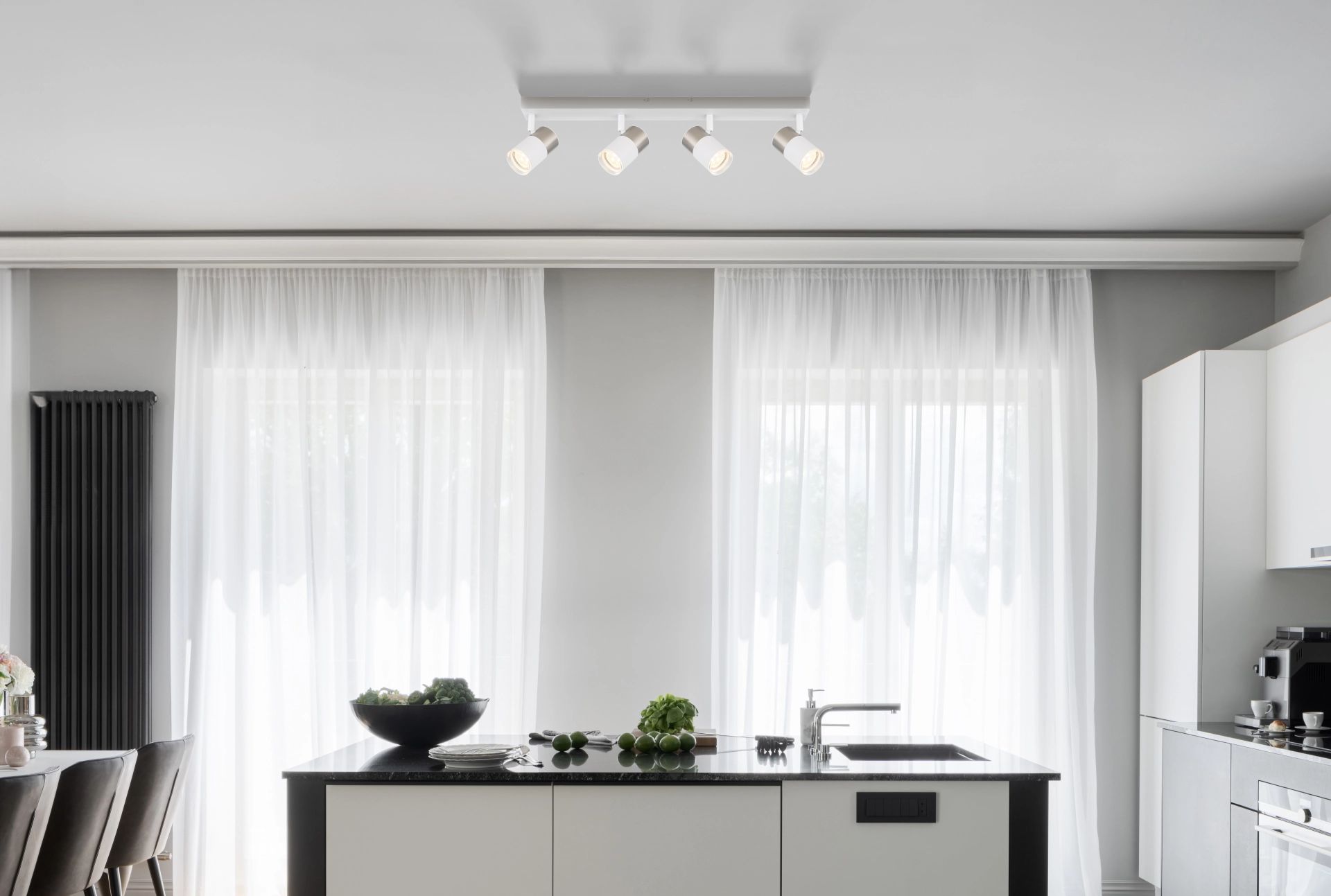 Esta moderna lámpara de pared es la combinación perfecta de estilo y funcionalidad para tu interior. Con su forma rectangular y sus apliques cilíndricos a juego, esta lámpara aporta un toque contemporáneo a cualquier espacio. El metal blanco mate de alta calidad le da a la lámpara de pared una apariencia refinada. Equipado con cuatro focos GU10 con una potencia total de 25W, esta lámpara proporciona una iluminación efectiva y acogedora.