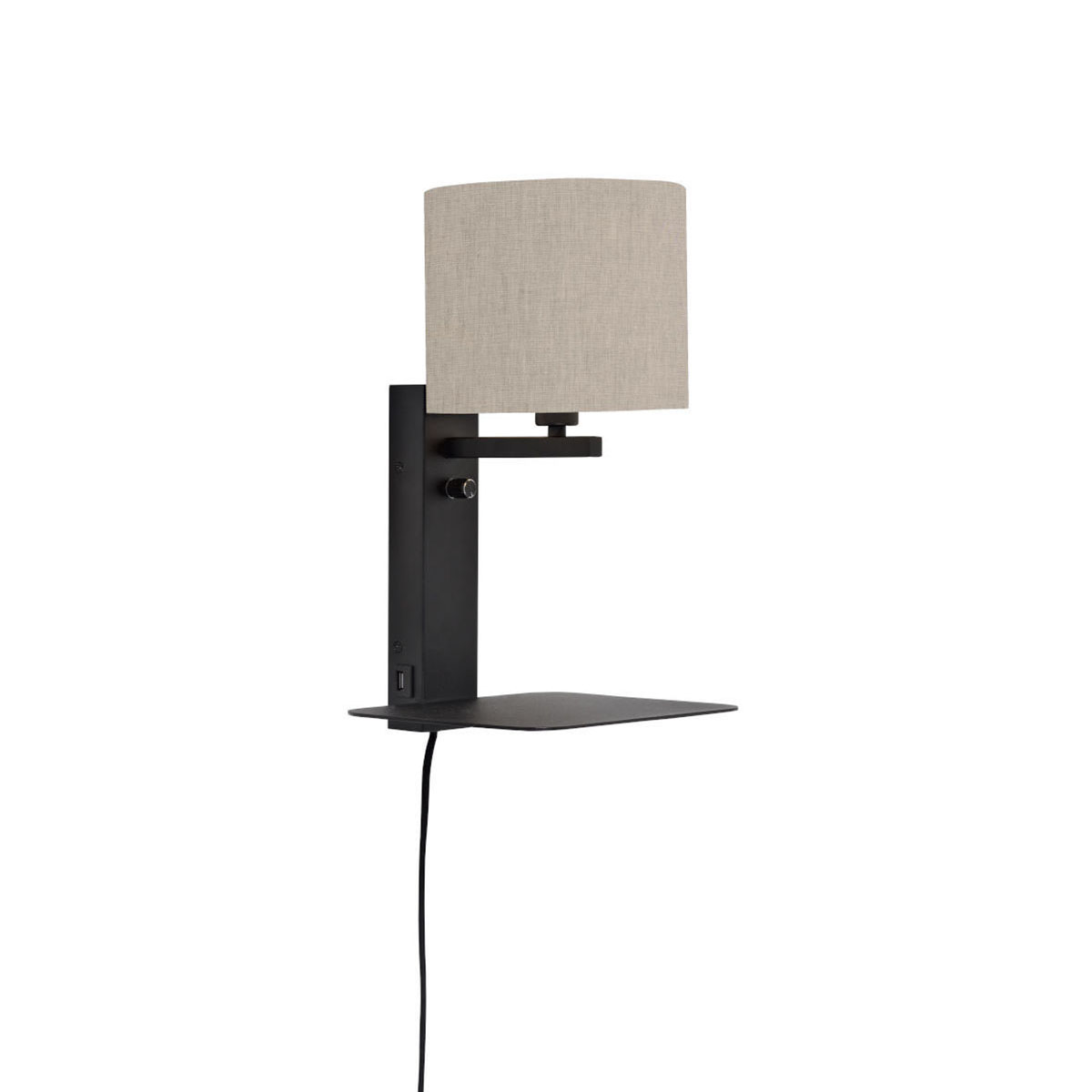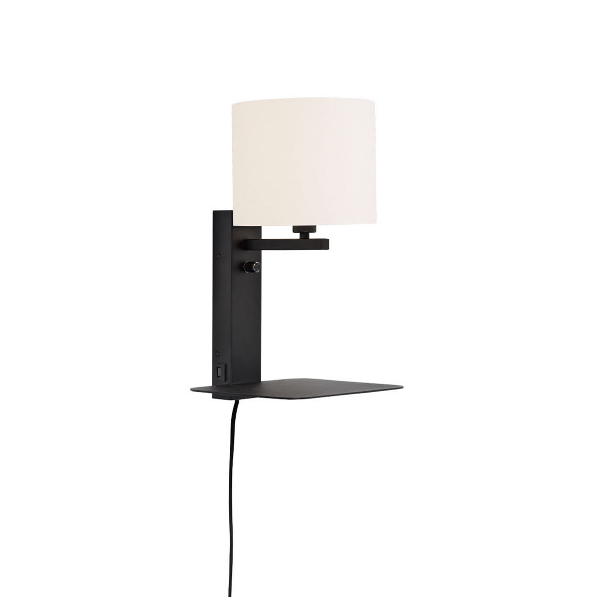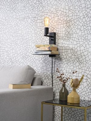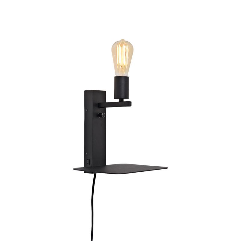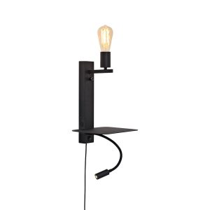 Lámpara de pared negra con estante, sin pantallas, irradia un minimalismo moderno. Adecuada para comedor, dormitorio o salón. Equipado con un casquillo grande E27 y a prueba de polvo (IP20). Añade un toque de simplicidad y estilo.