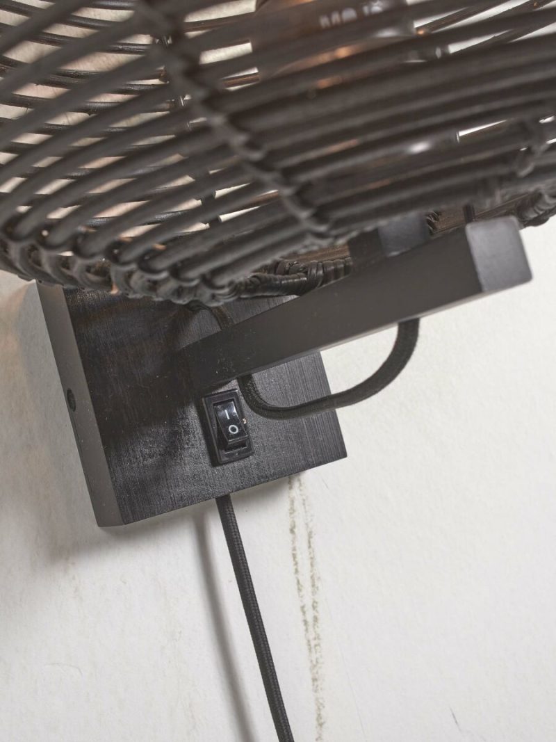 Lámpara de pared redonda bohemia de ratán negro GOOD & MOJO Tanami