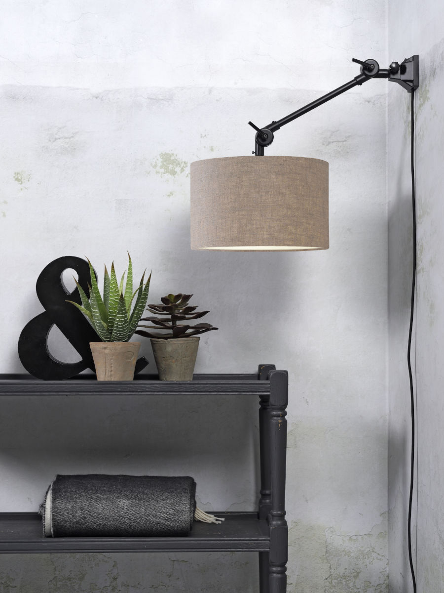 Mejora tu espacio con la lámpara de pared retro gris Amsterdam. Esta lámpara de metal es ideal para el comedor, dormitorio o salón. Con una combinación de lino y metal, esta lámpara ofrece una mezcla única de texturas que aporta un ambiente elegante y cálido a cualquier espacio.