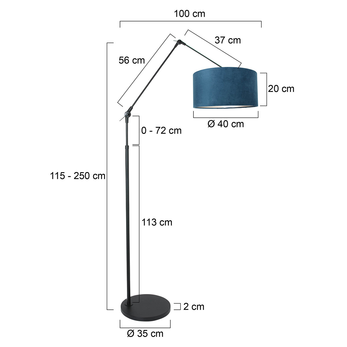 En un lunes azul compraste una lámpara de pie que ya está rota. Con la azul “Prestige” de Steinhauer eso no te pasará. Esta lámpara de pie tiene un marco negro esbelto que puedes ajustar hasta dos metros y medio gracias a los dos brazos articulados. La elegante pantalla de terciopelo azul es un verdadero atractivo. ¡Vas a disfrutar de nuevo de tu emocionante thriller!