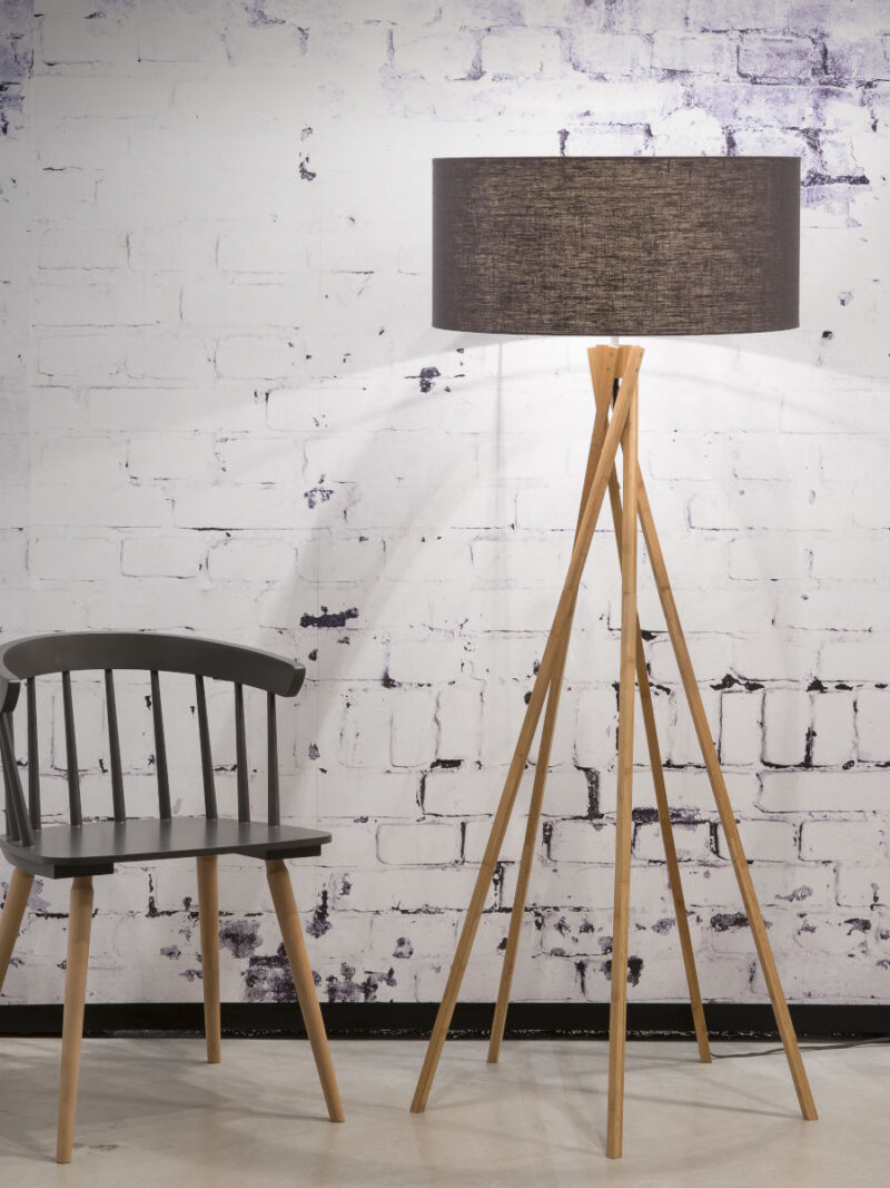 Lámpara de pie bohemia de bambú en lino gris de GOOD&MOJO Kilimanjaro. Diseño elegante y estiloso que ilumina cualquier espacio. Adecuada para comedor, dormitorio o sala de estar. Casquillo E27 y protección IP20 contra el polvo. Fuente de luz no incluida. Para un toque moderno y elegante en tu hogar.